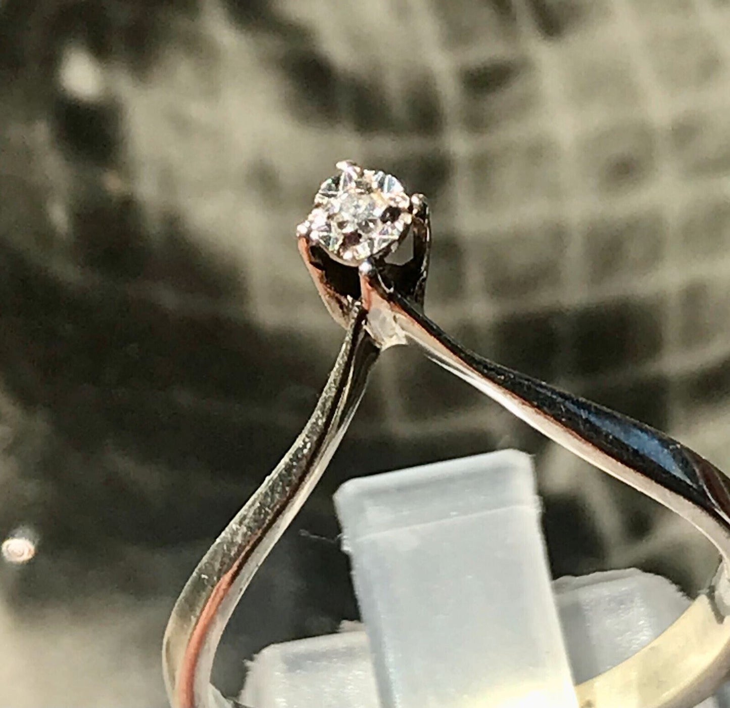 Kommodengriff präsentiert einen sehr edlen zauberhaften filigranen eleganten Solitär- Ring Damenring Verlobungsring aus 333 Weissgold Gold , der Stein soll Diamant sein, ich habe es aber nicht getestet