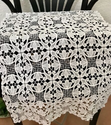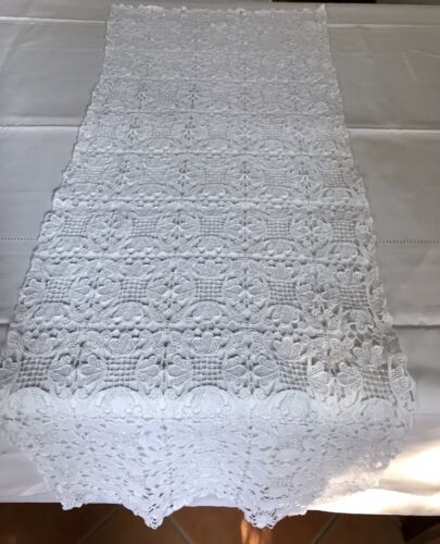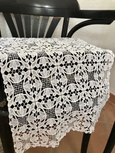 ERSCHEINUNG antik Brüsseler? Spitze Tischdecke Tischläufer weiß 94 cm x 38 cm