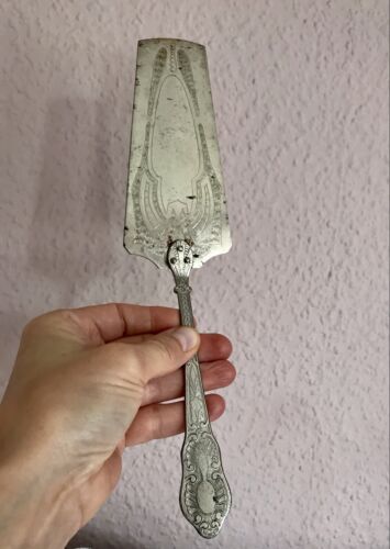 Groß Tortenschaufel Tortenheber Jugendstil Antik versilbert ? vernickelt? Schön!