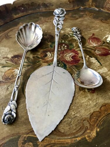 Kommodengriff präsentiert eine ältere Tortenschaufel Tortenheber aus 800er Silber mit Rosenmuster-Griff wohl Hildesheimer Rose