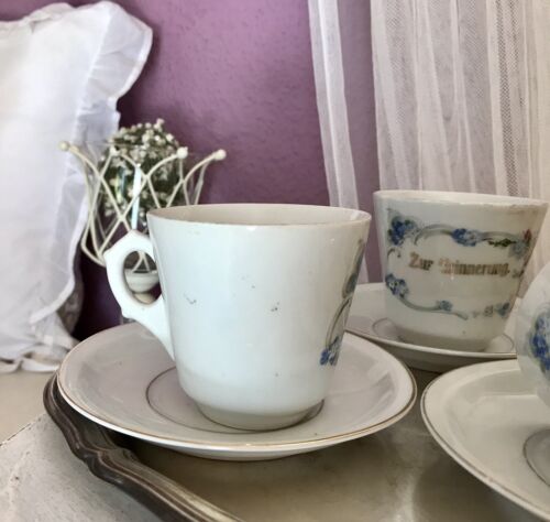 Jugendstil Porzellan Andenken 1 von 4 Kaffee-Gedeck Tasse Zur Erinnerung