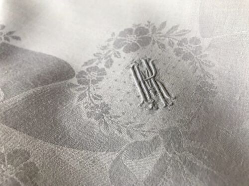 Jugendstil Stoffserviette Serviette Leinen Seidendamast Monogramm Weiß Lochsaum
