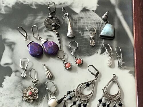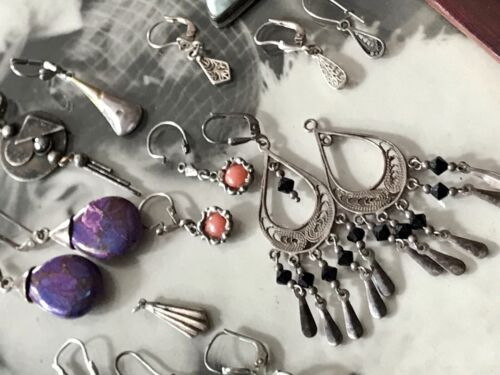 Konvolut Antik alt Bruchsilber Ohrringe Ohrstecker Silber Einzelteile & Paare