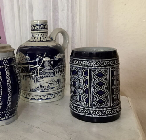 Krug Bierseidel Keramik Westerwälder ? blau grau Bierhumpen