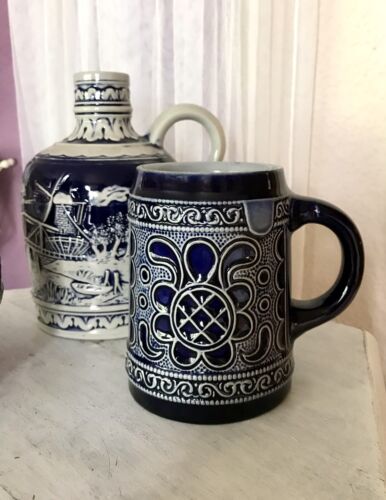 Krug Kanne Flasche Keramik Westerwälder Gerz Gerzit blau grau