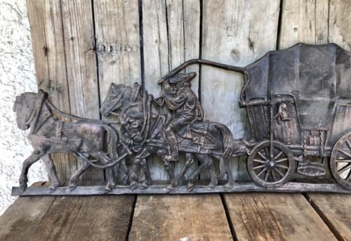 Kutsche Pferdewagen Wandrelief Bild Relief Aluguss bronziert