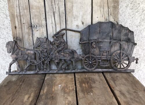 Kommodengriff präsentiert ein schönes Wandrelief -Bild aus Aluguss/Reliefbild mit Kutschermotiv Pferdegespann Pferdekutsche Droschke Pistilion??