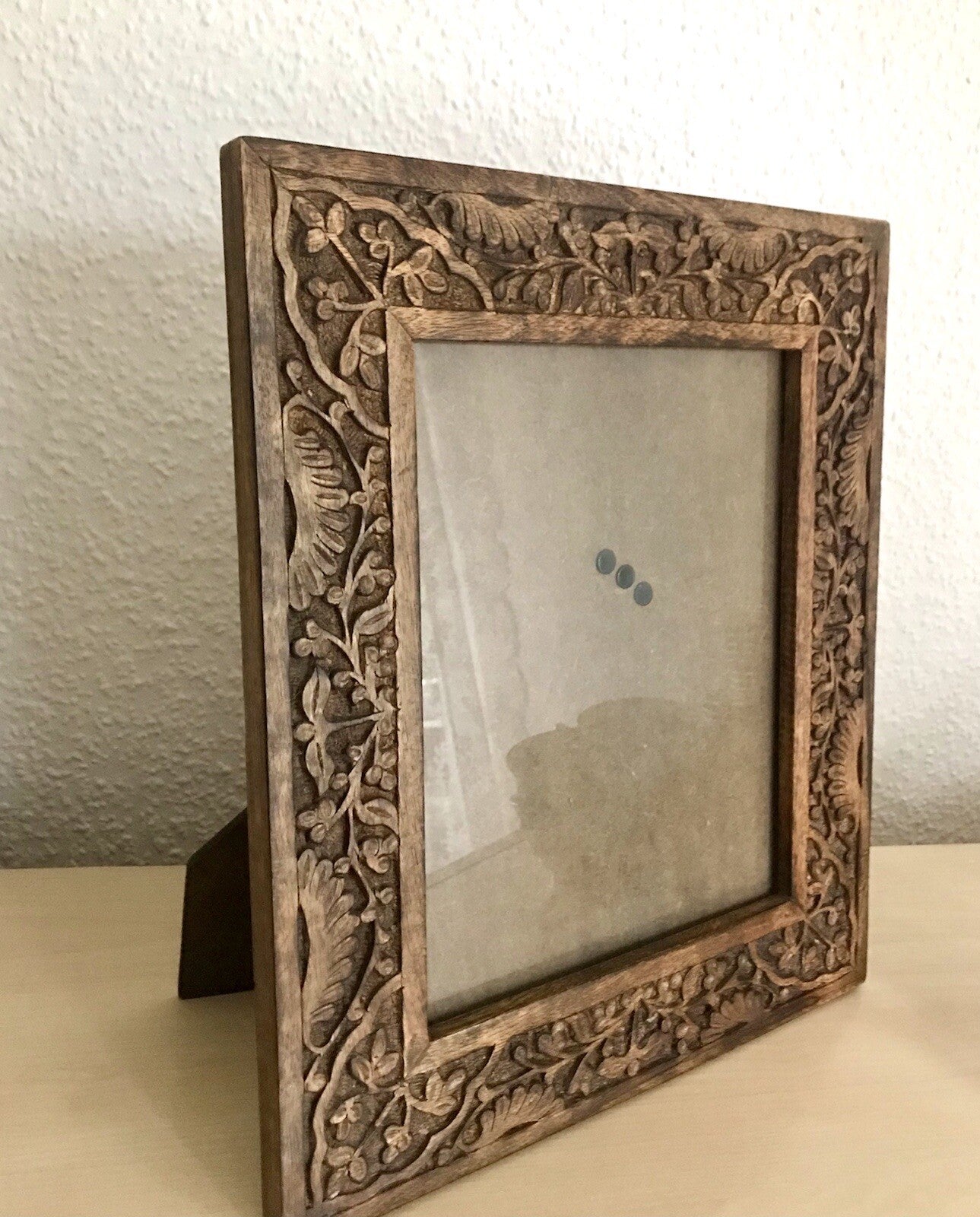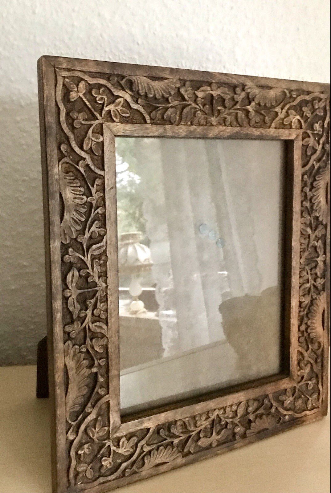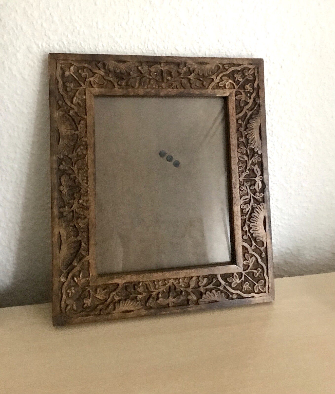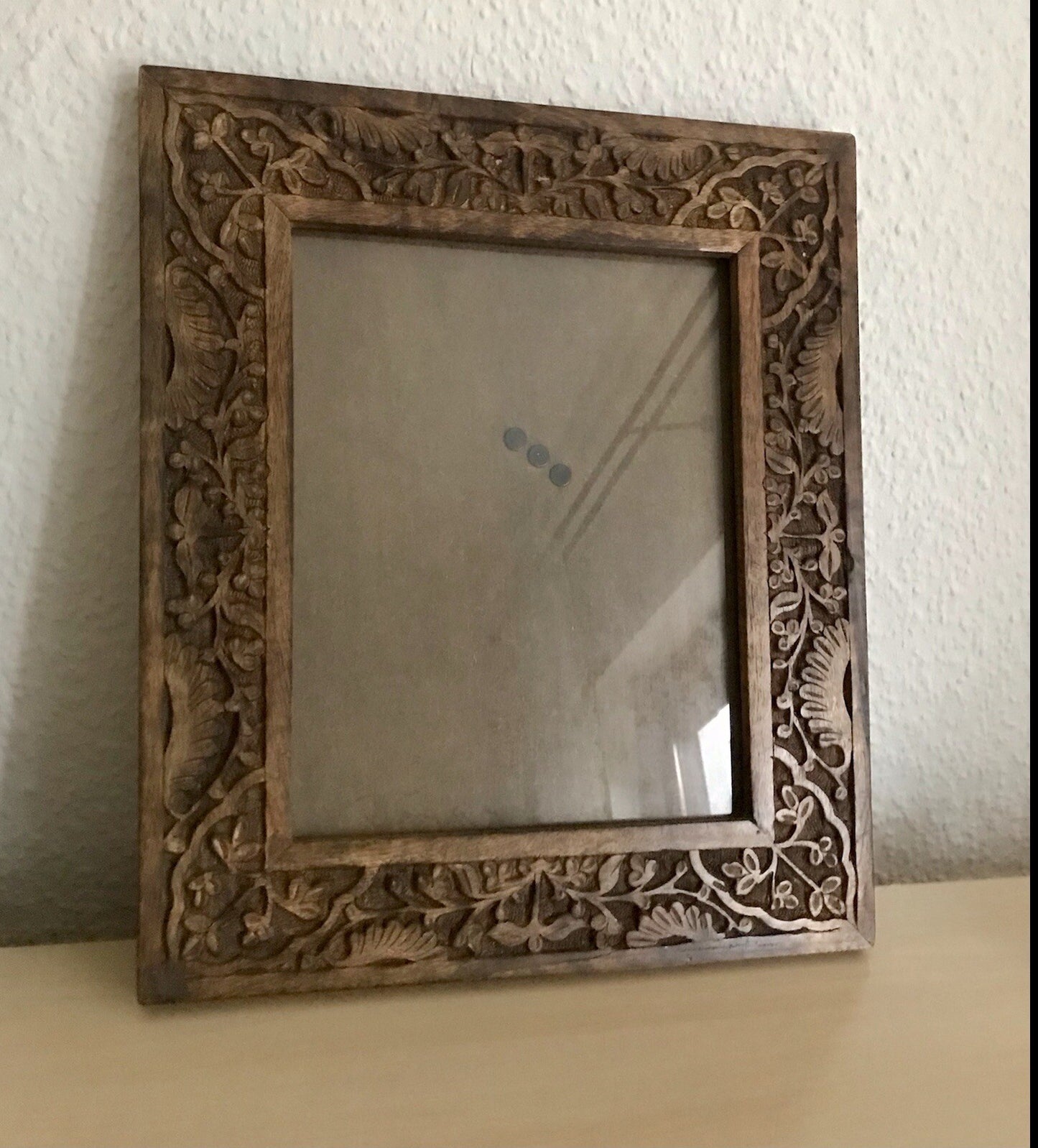 Mango Holz Bilderrahmen Stilvoll Kolonial Stil Stellen Hängen geschnitzt braun