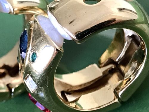 Besonders herausragend ist die Harmonie in der Kombi und Anordnung der Farbsteine sowie das rückseitige Durchbruchmuster mit 3 untereinander liegenden Herzchen.