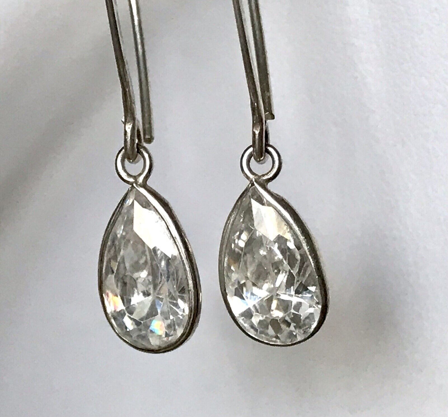Originell Ohrhänger Ohrringe DAMEN Silber Bergkristall ? Navette Form Design