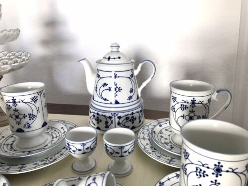 Porzellan Service 4 Personen so Schön! indisch blau Kanne Stövchen Eierbecher