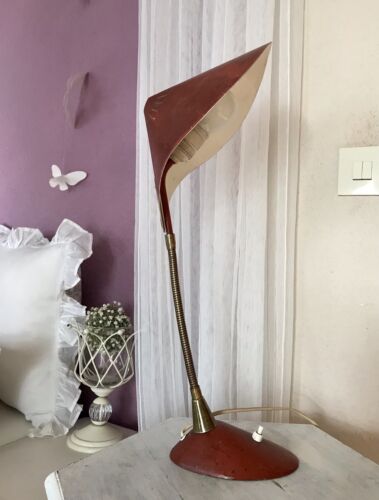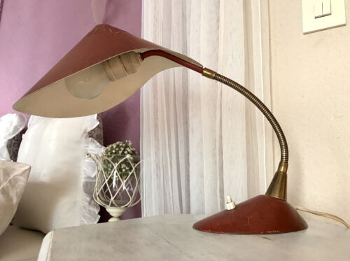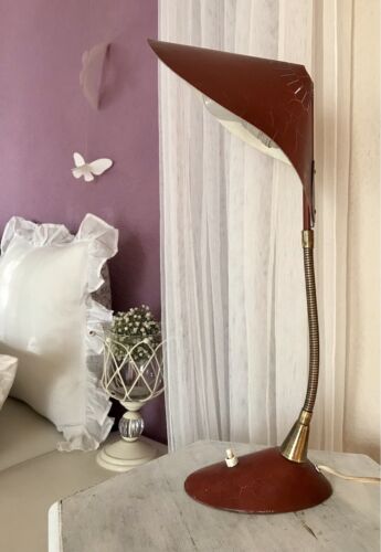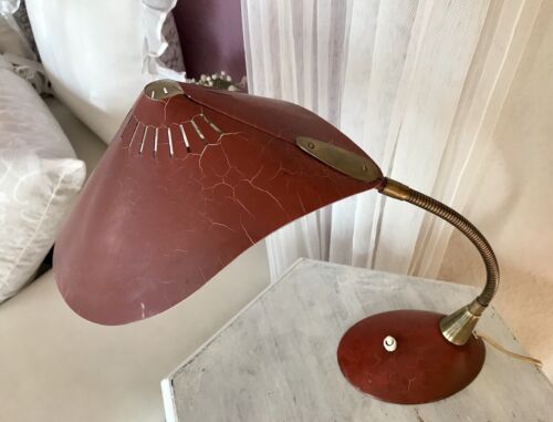 Rar 50er Vintage 50er Cosack Cobra Designer Tischleuchte Lampe „Burgund“ Messing