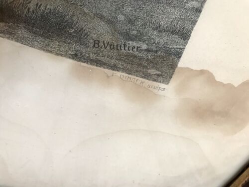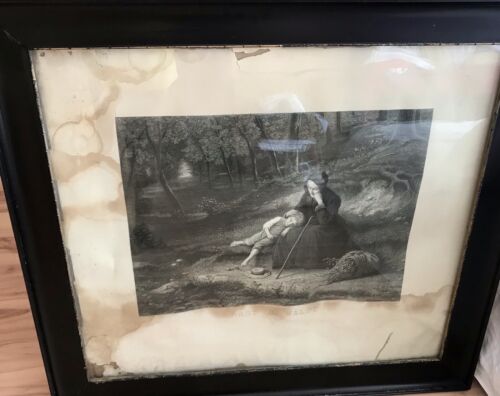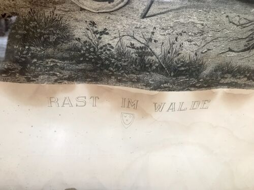 Rarität Antik Kunst Kupferstich Vautier „Rast im Walde“ F. Dinger um 1880 Rahmen