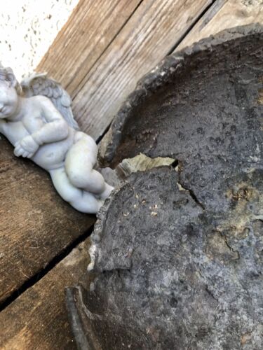 Wie auf den Fotos: beschädigt, scheint ausgegraben worden zu sein, korrodiert, Stück/e? herausgebrochen.