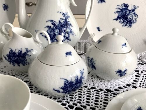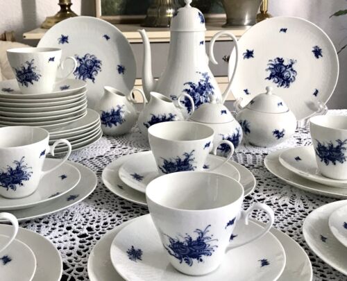 Rosenthal 14 Pers. Vintage Porzellan Classic Kaffeeservice 70er Edel weiß blau