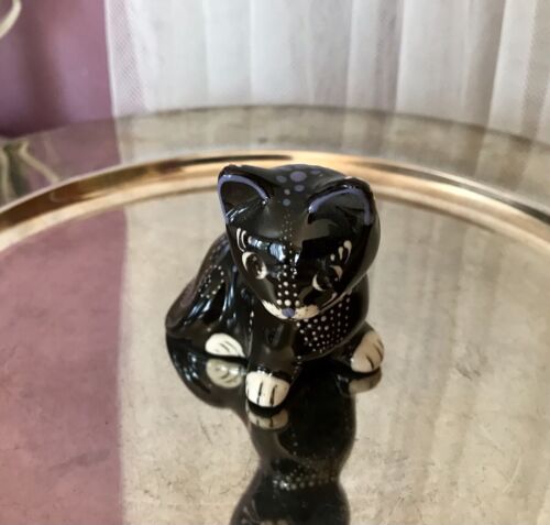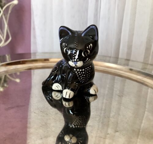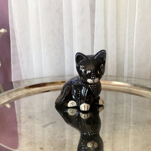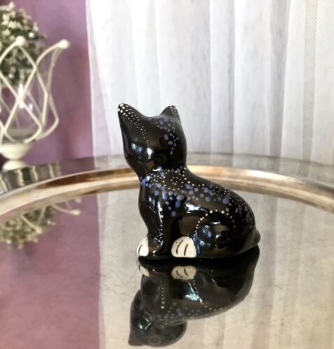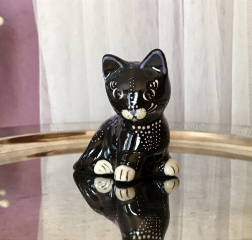 Kommodengriff präsentiert eine sehr hübsche süße kleine wohl Porzellan-Figur (oder doch aus Keramik?) Figur aus Porzellan Darstellung einer sitzenden Katze