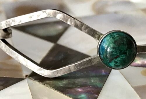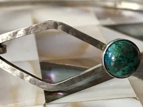 So Schön 5,19g Silber Armreif Reif Armband Vintage Modernist grüner Stein