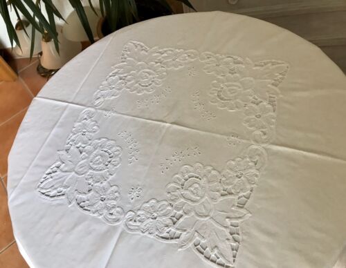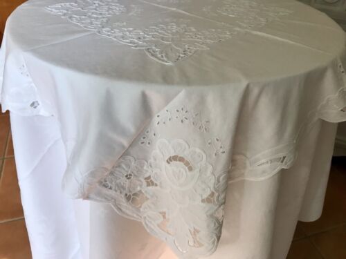 Tischdecke 83 x 82 Stickerei weiß Baumwolle Spitze elegant floral Rosette