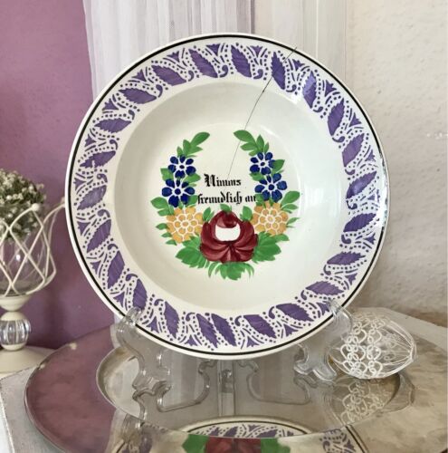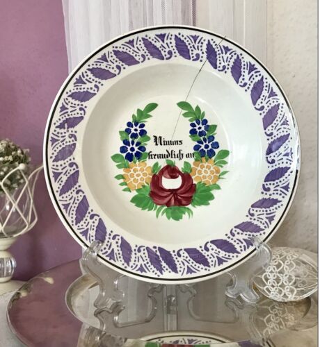 Villeroy&Boch Antik Keramik Majolika Teller Zierteller „Nimm’s freundlich an“