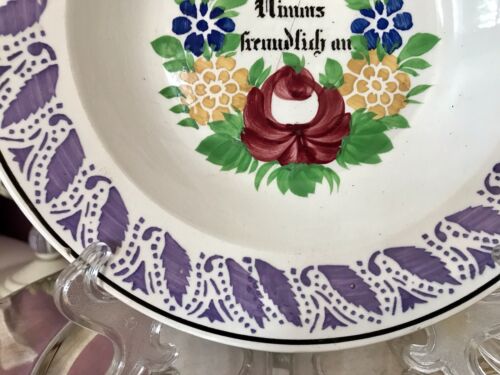 Kommodengriff präsentiert 1 wunderschönen sehr dekorativen antiken seltenen Teller Zierteller Andenkenteller von Villeroy&Boch mit der Widmung: „Nimms freundlich an“
