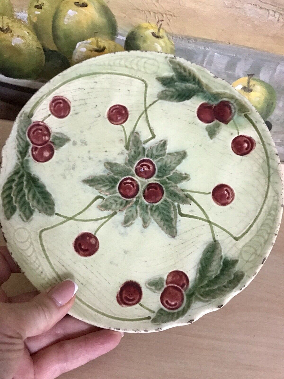 Villeroy&Boch Antik Keramik Majolika Teller Zierteller Schale Teller Kirschen