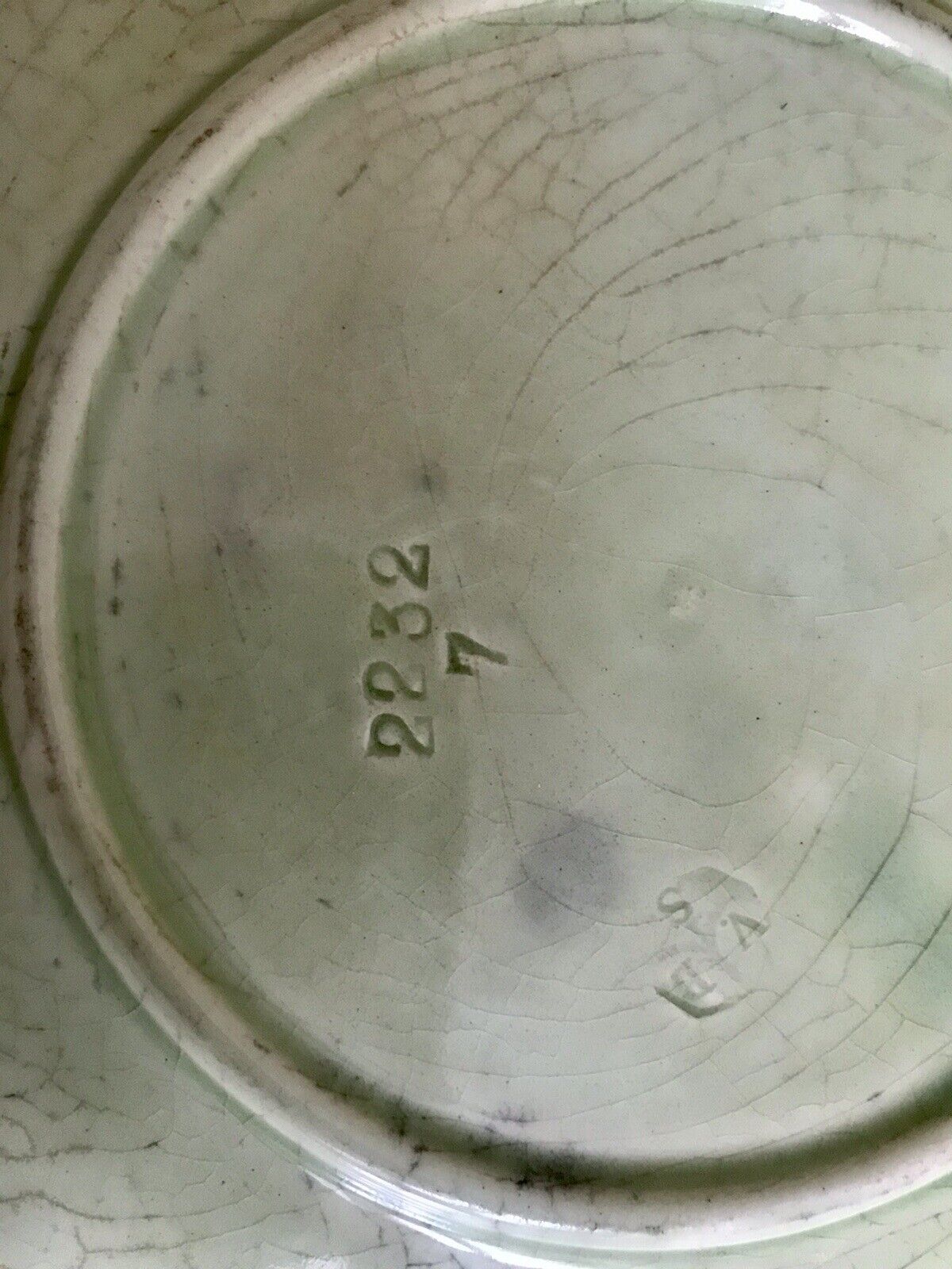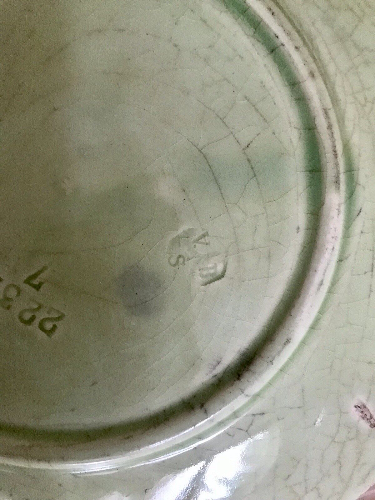 Wunderschöner seltener Zierteller mit wundervoller Farbe etwa lindgrün mit Jugendstil-Dekor und Muster mit Kirschen.