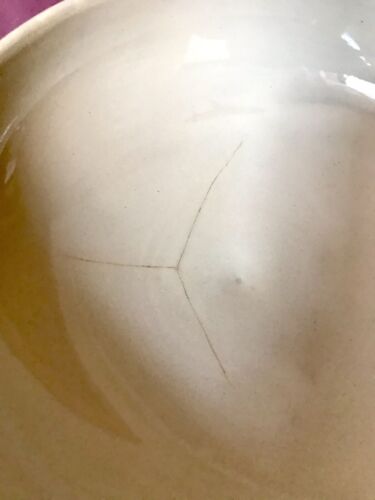 Deckel weist einen Spannungsriss außen unter der Glasur, innen leicht unter dem Finger spürbar.
