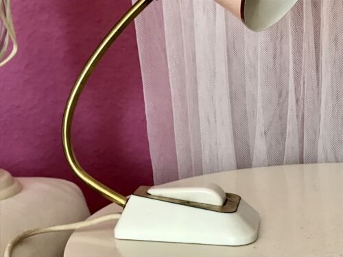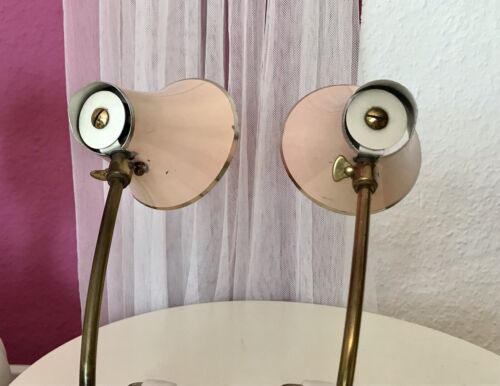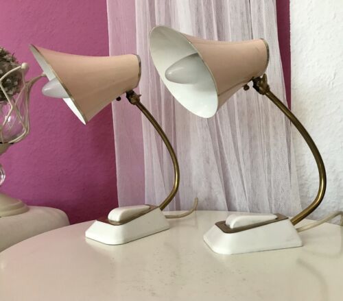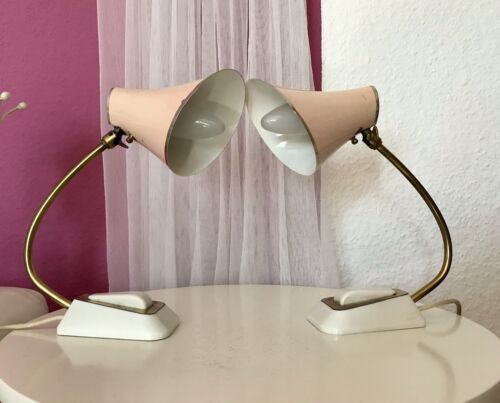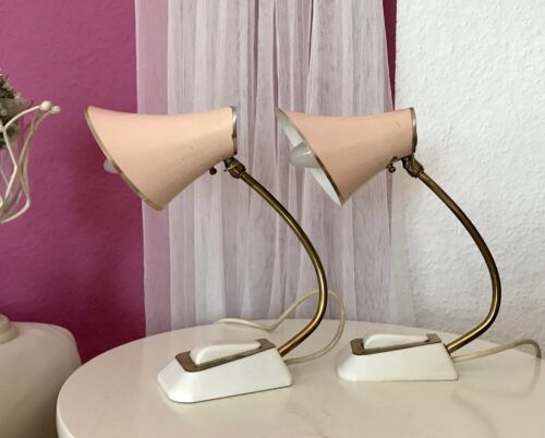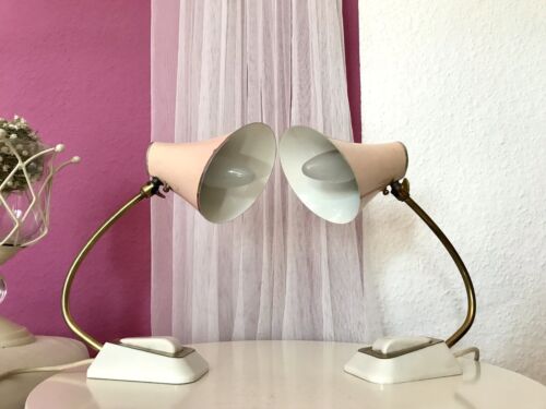 Vintage 2x Mid Century 50er 60er Tischleuchte Lampe Leuchte Apricot weiß Messing