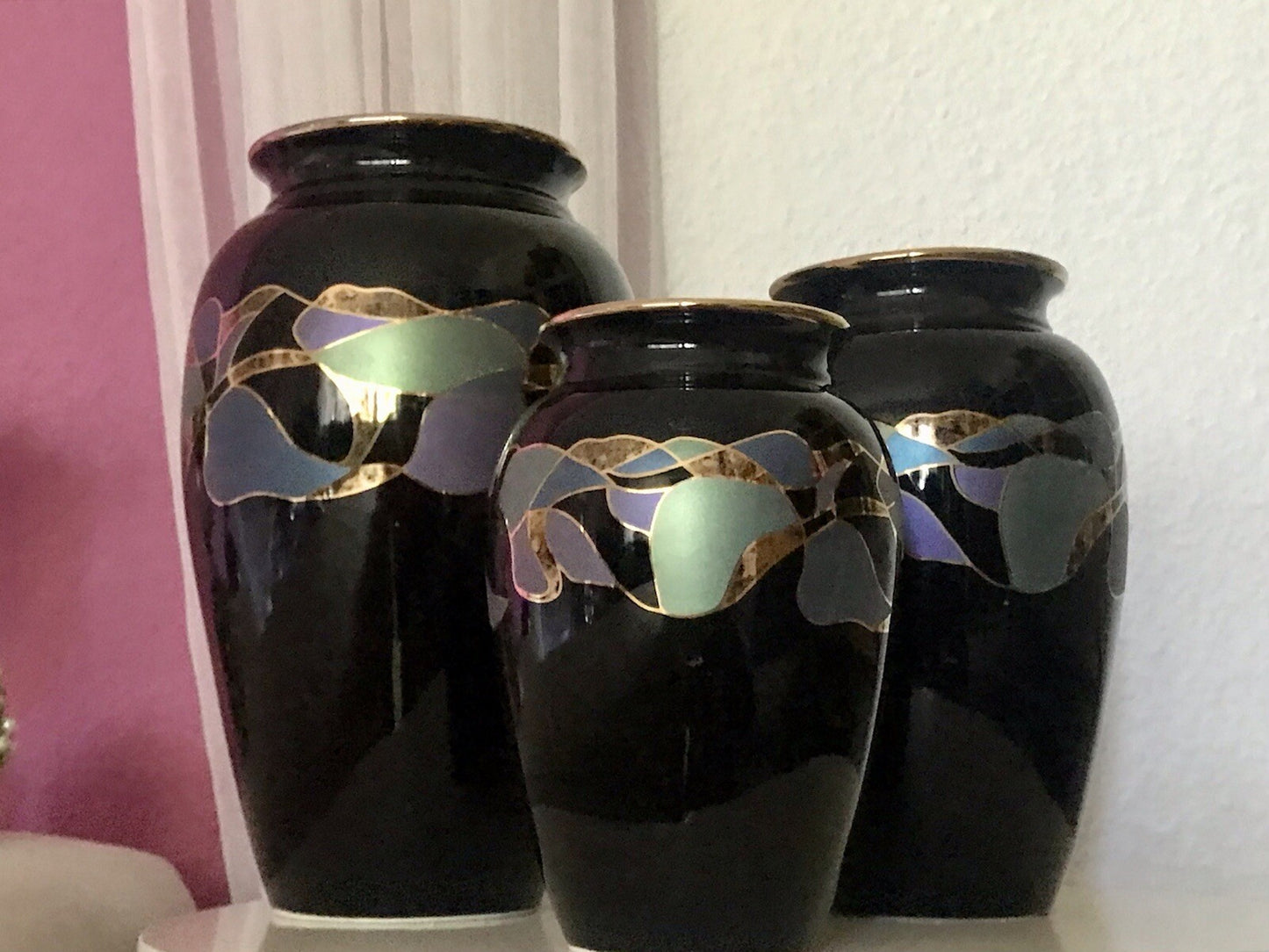 KOM-070Kommodengriff präsentiert 3 wunderschöne edle auffällige Vasen bzw. Vasen-Set in Mid Century Vintage Stil in einer schönen Ausführung