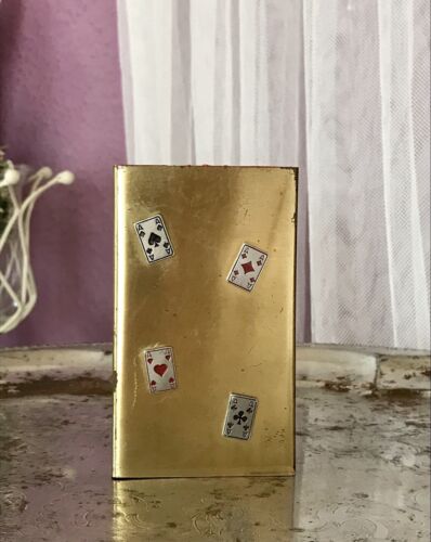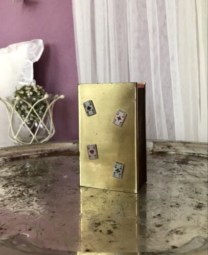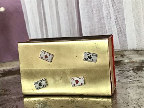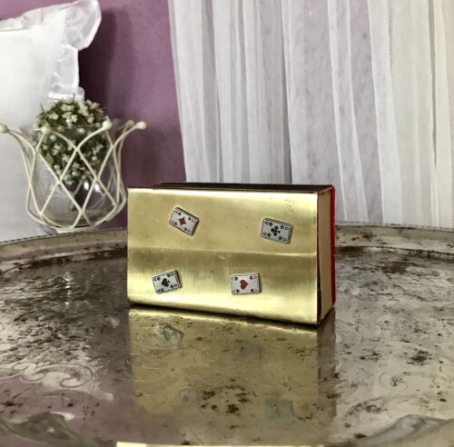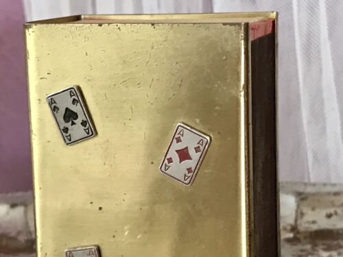 Vintage 60er Messing Streichholz Etui Spielkarten Motiv Streichhölzer Welthölzer