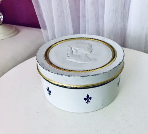 Kommodengriff präsentiert 1 alte wunderschöne Tchibo Blechdose Deckeldose Kaffeedose mit Marie Antoinette Büste als Relief
