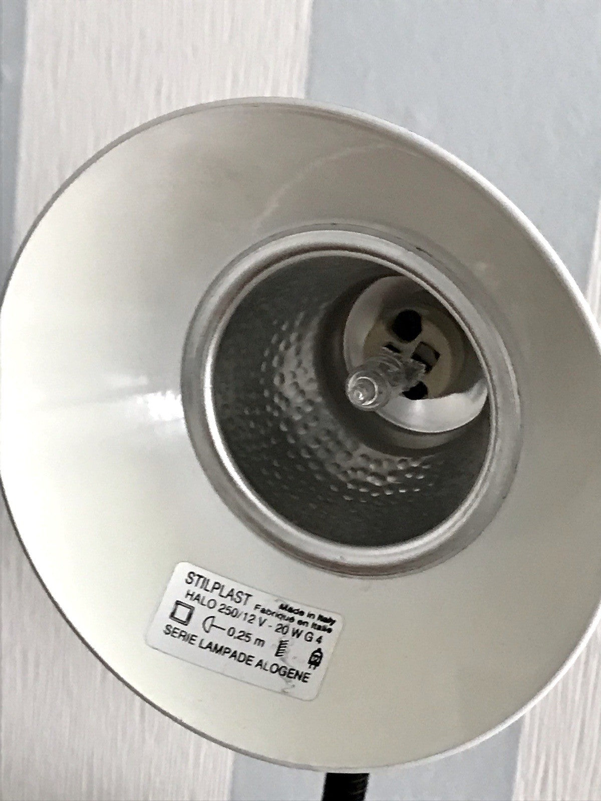 W31-16Kommodengriff präsentiert eine stylische alte gebrauchte true Vintage Tischleuchte Gelenkarm- Leuchte Schreibtisch- Lampe oder auch Schwenkarm-Lampe aus den 70er Jahren von Stilplast Italy, Typ: Alo Lampade Alogeme