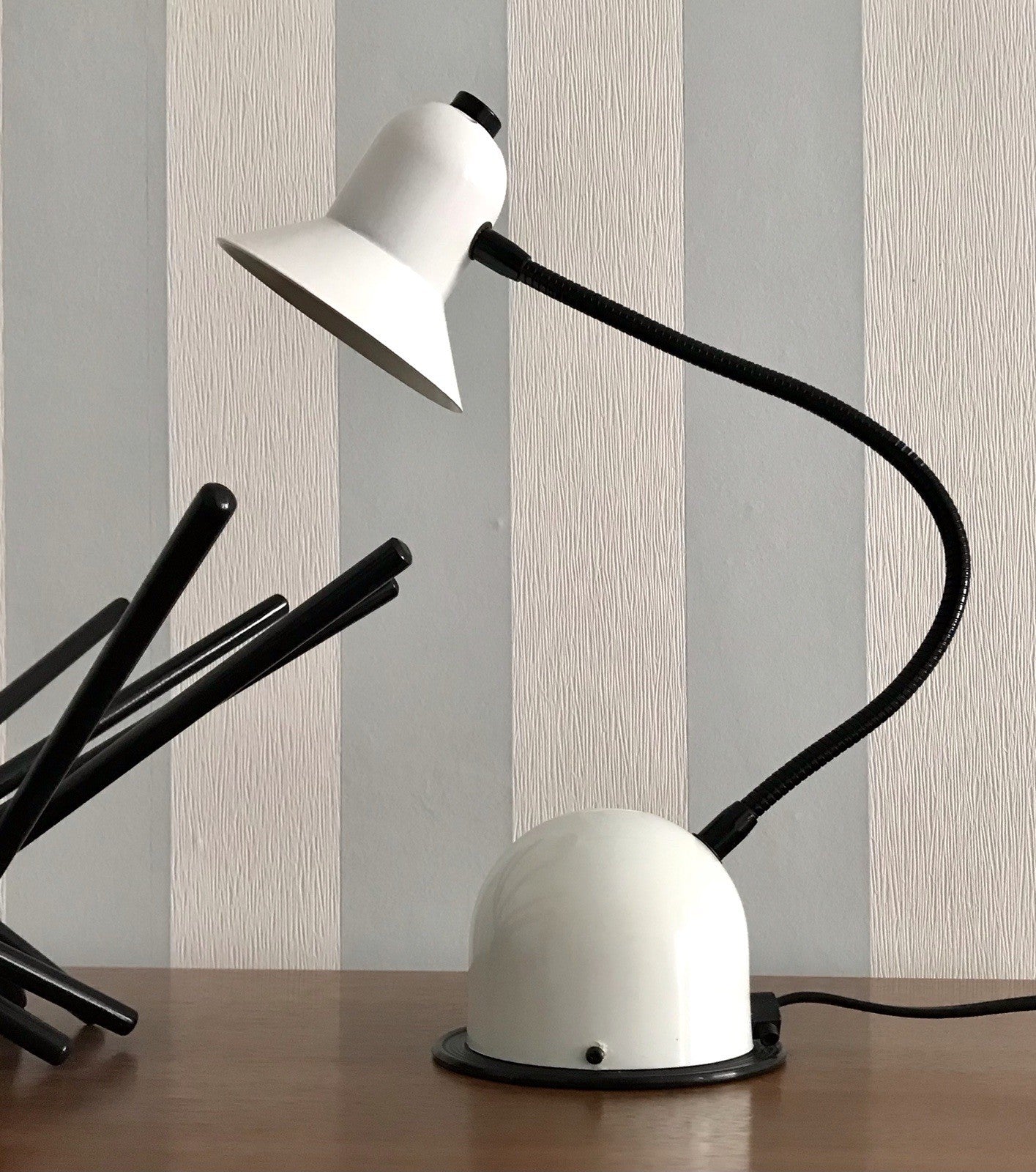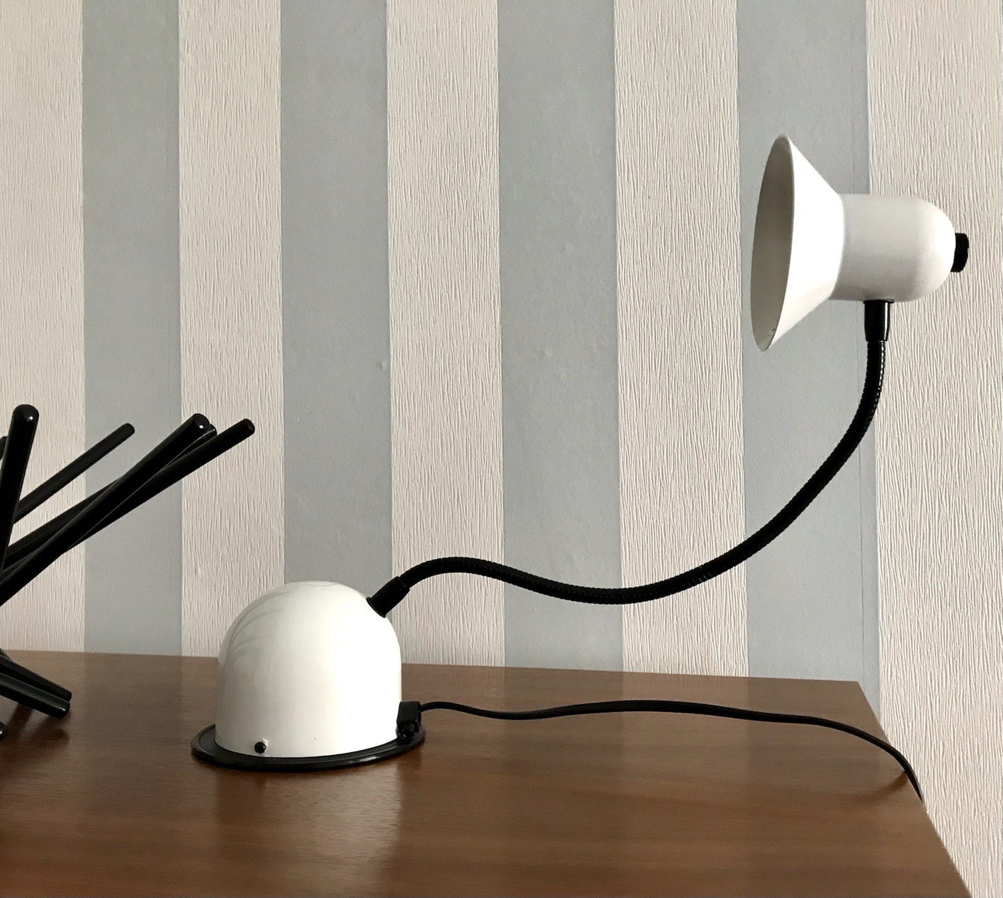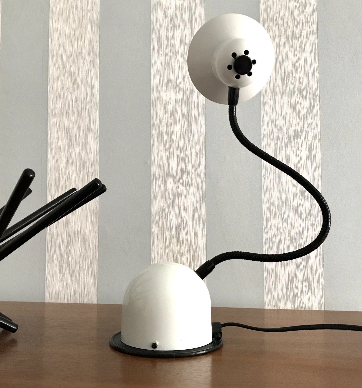 Vintage 70er Gelenkarm Tischleuchte Lampe Leuchte Stilplast Italy schwarz weiß
