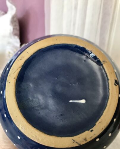 Wunderschönes Design mit Tupfen/gepunktet in blau und weiß, durch die Glasur schön glänzend.