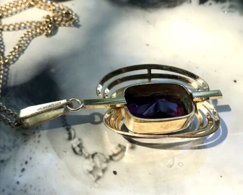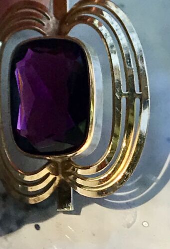 Vintage A*D Edel Designer Anhänger lila Stein Amethyst? Amerik. Doublè vergoldet