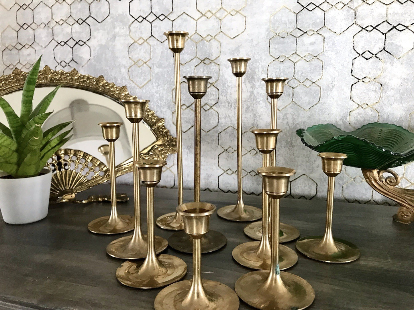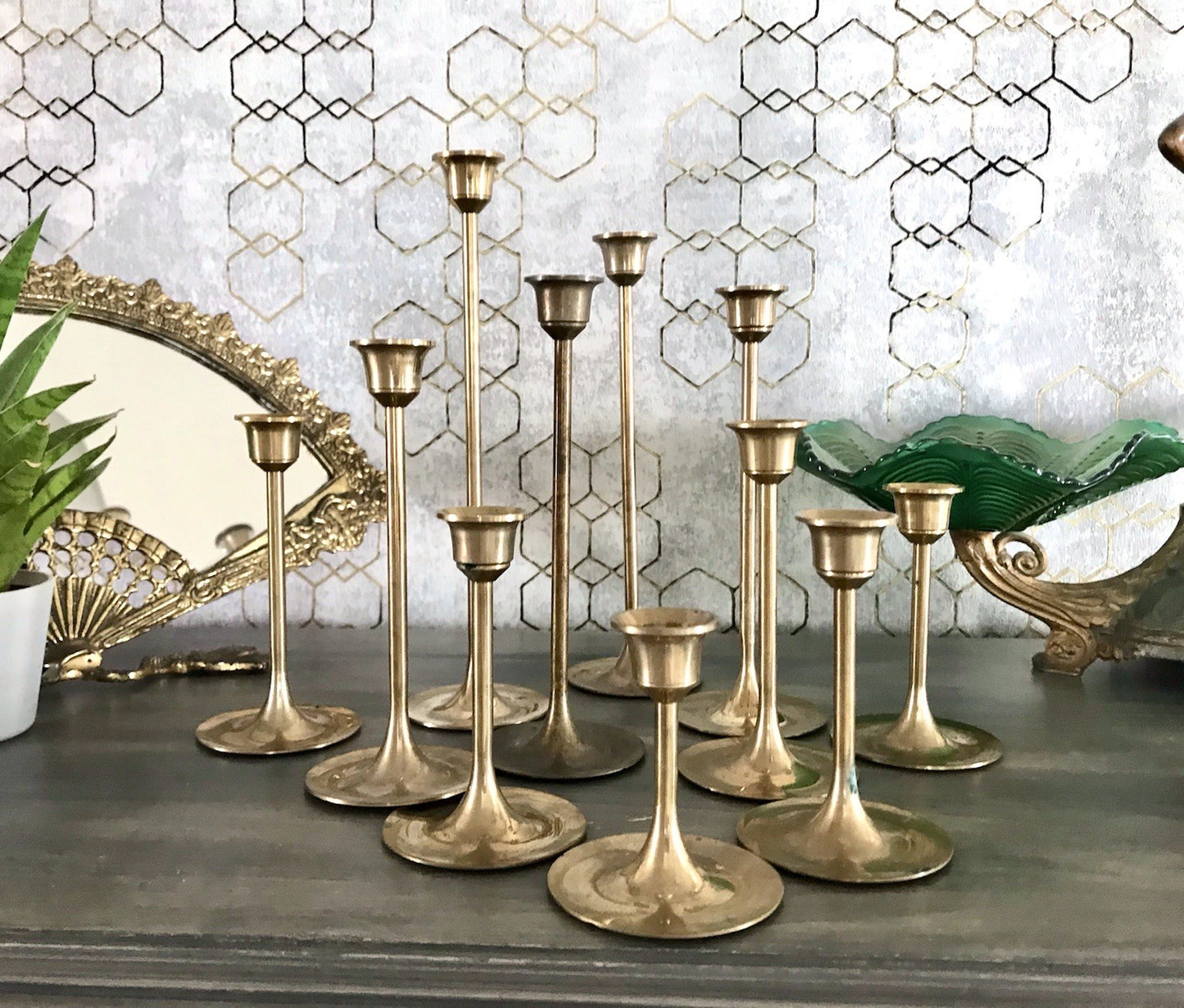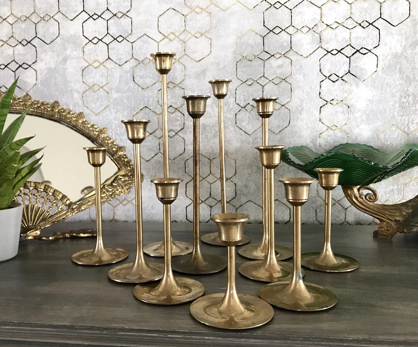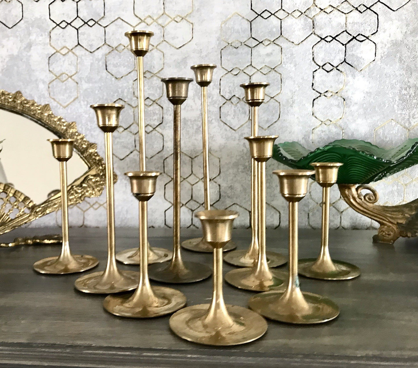 Schickes Set bestehend aus 11 Kerzenhaltern Kerzenleuchter Kerzenständer aus massivem Messing.