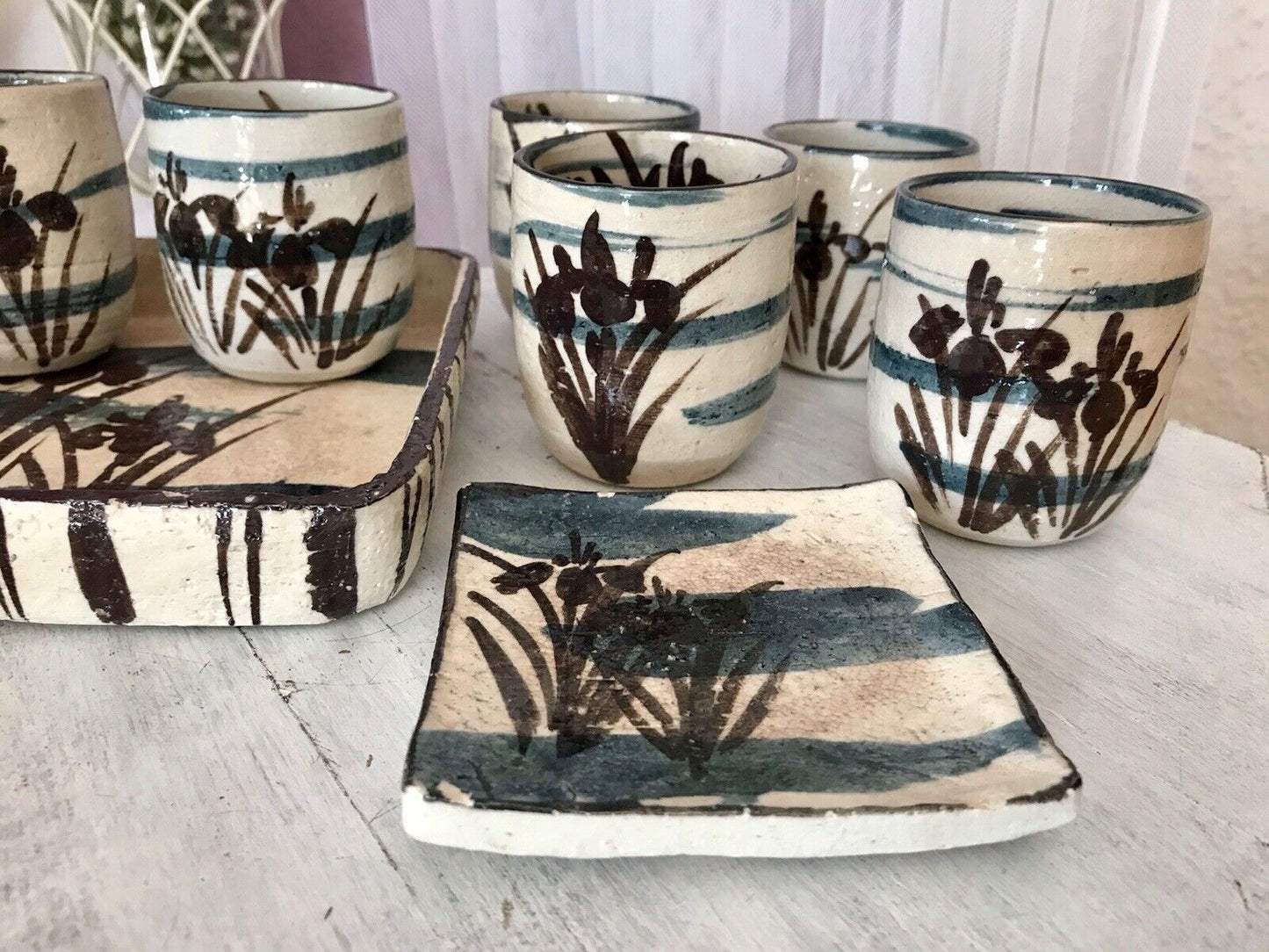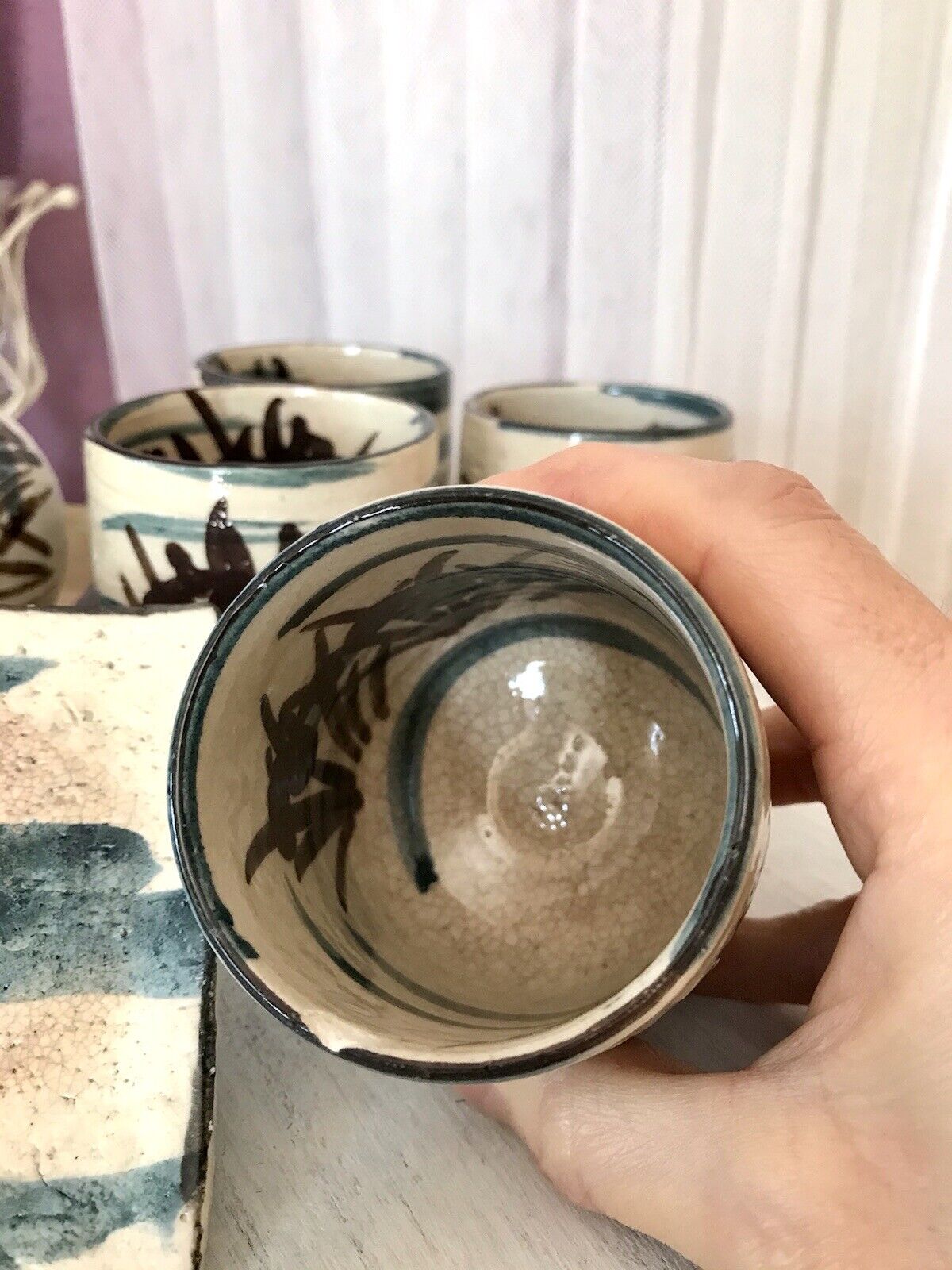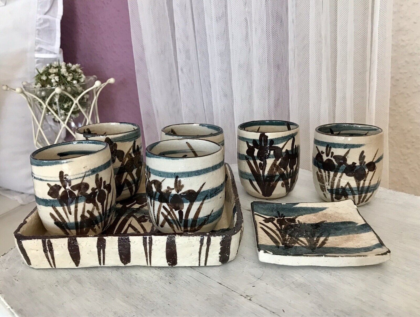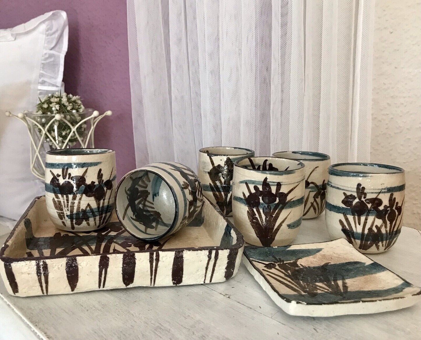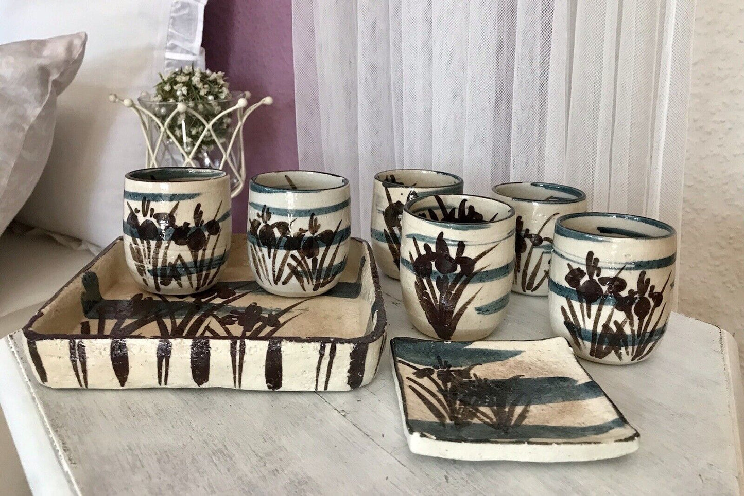 Vintage alt Steinzeug Keramik Chawan Service Japan Mino Momoyama Ware signiert