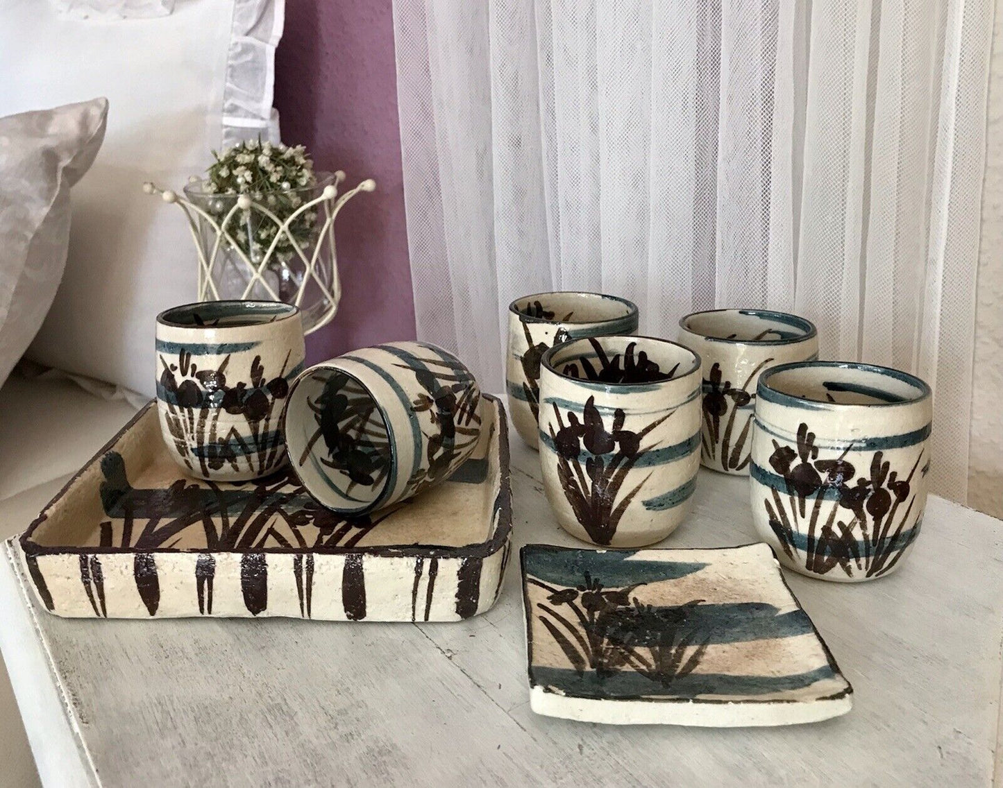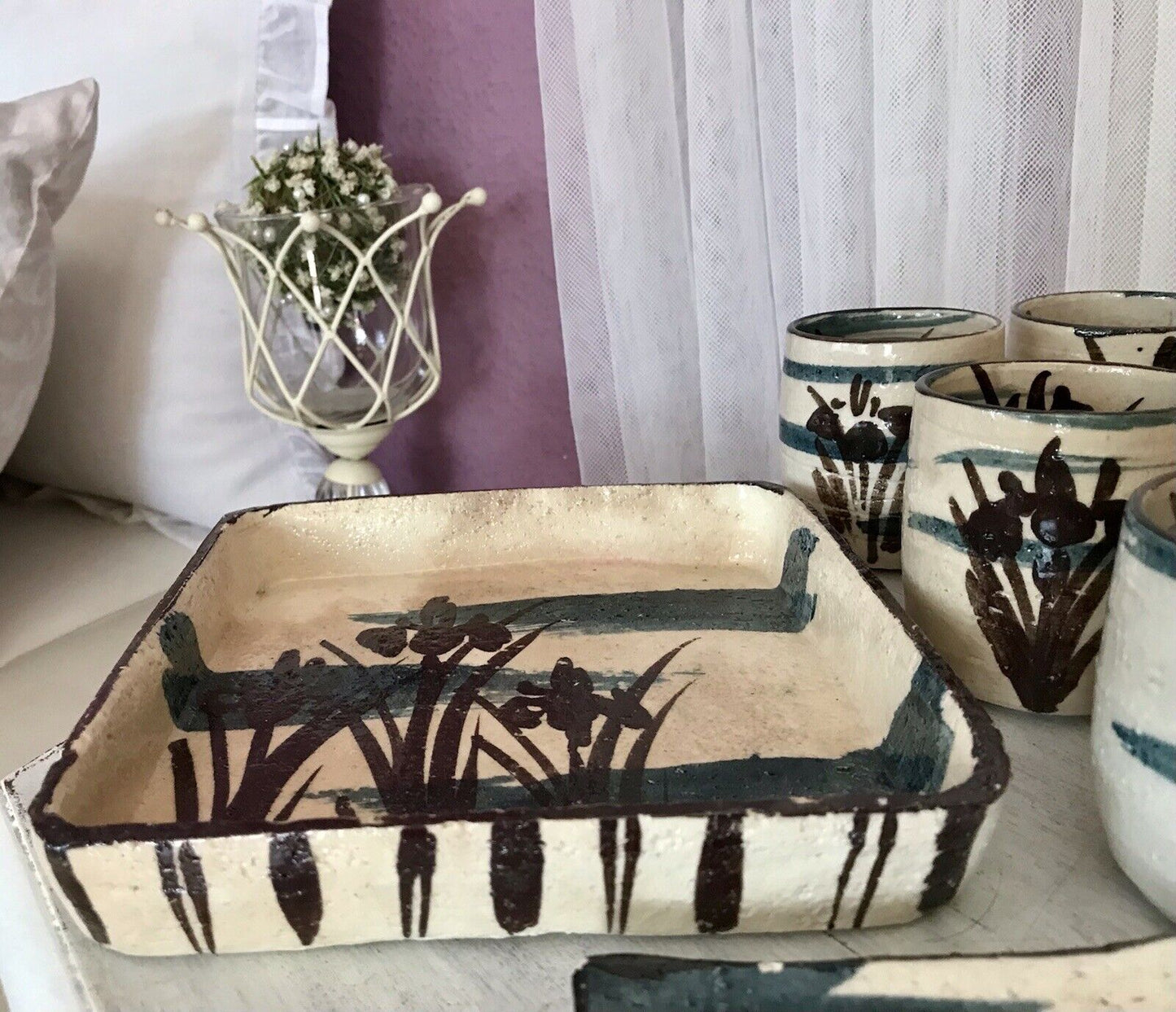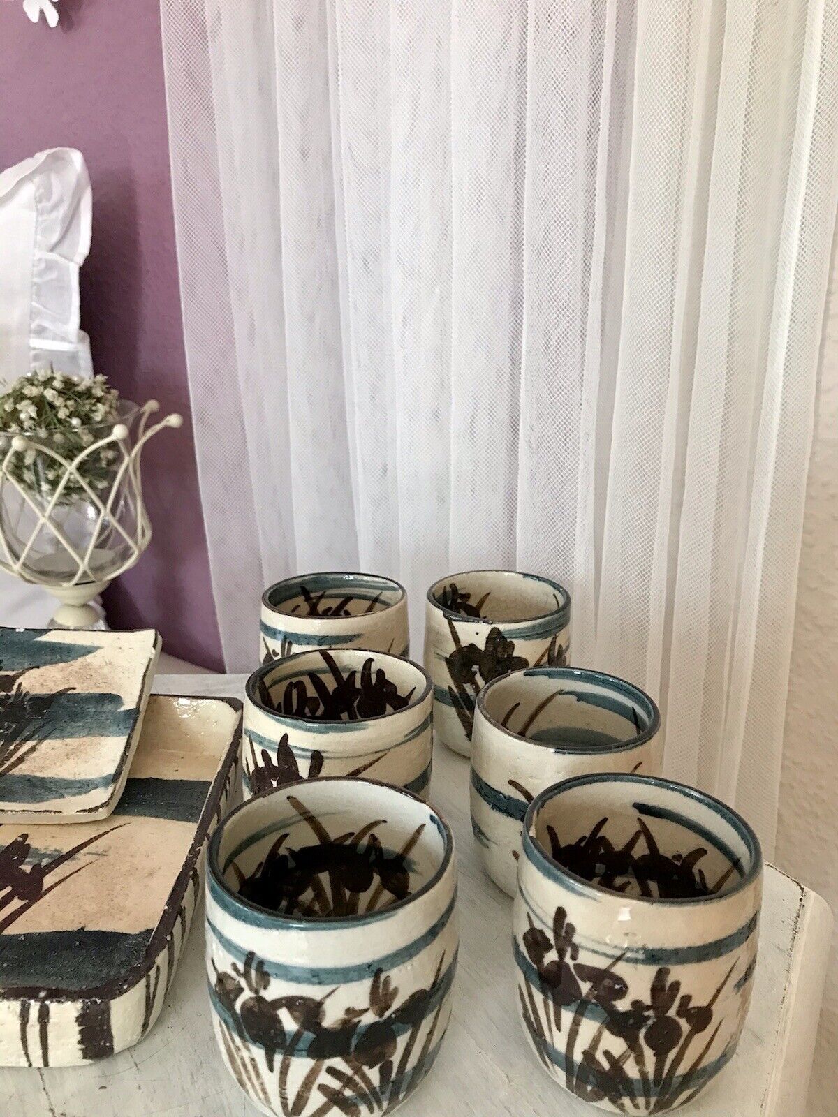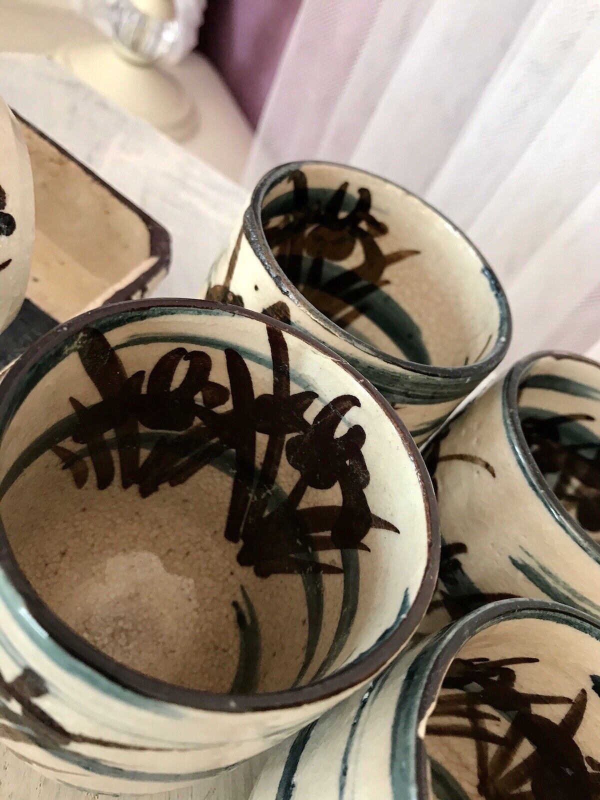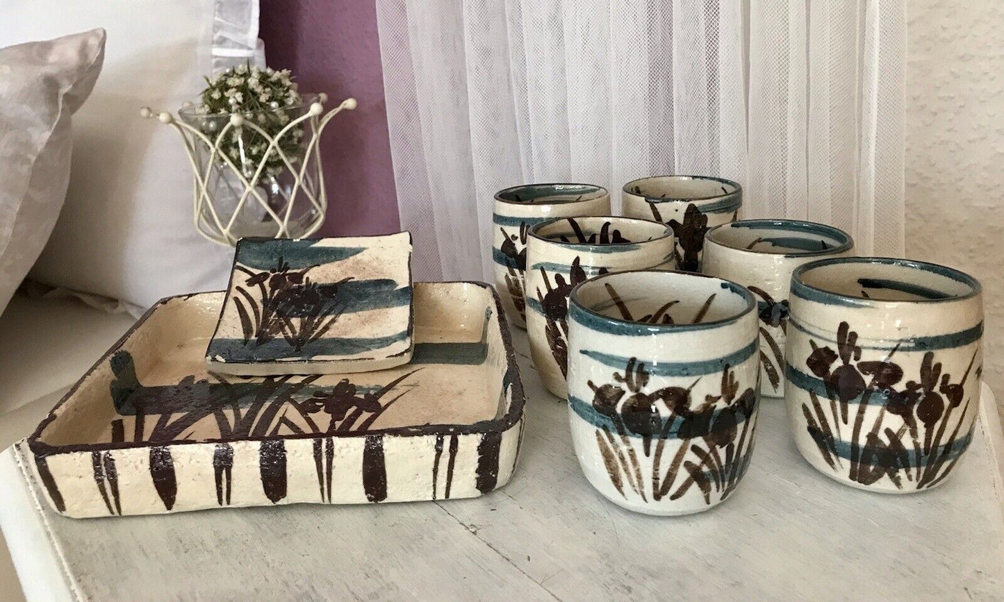 Vintage alt Steinzeug Keramik Chawan Service Japan Mino Momoyama Ware signiert