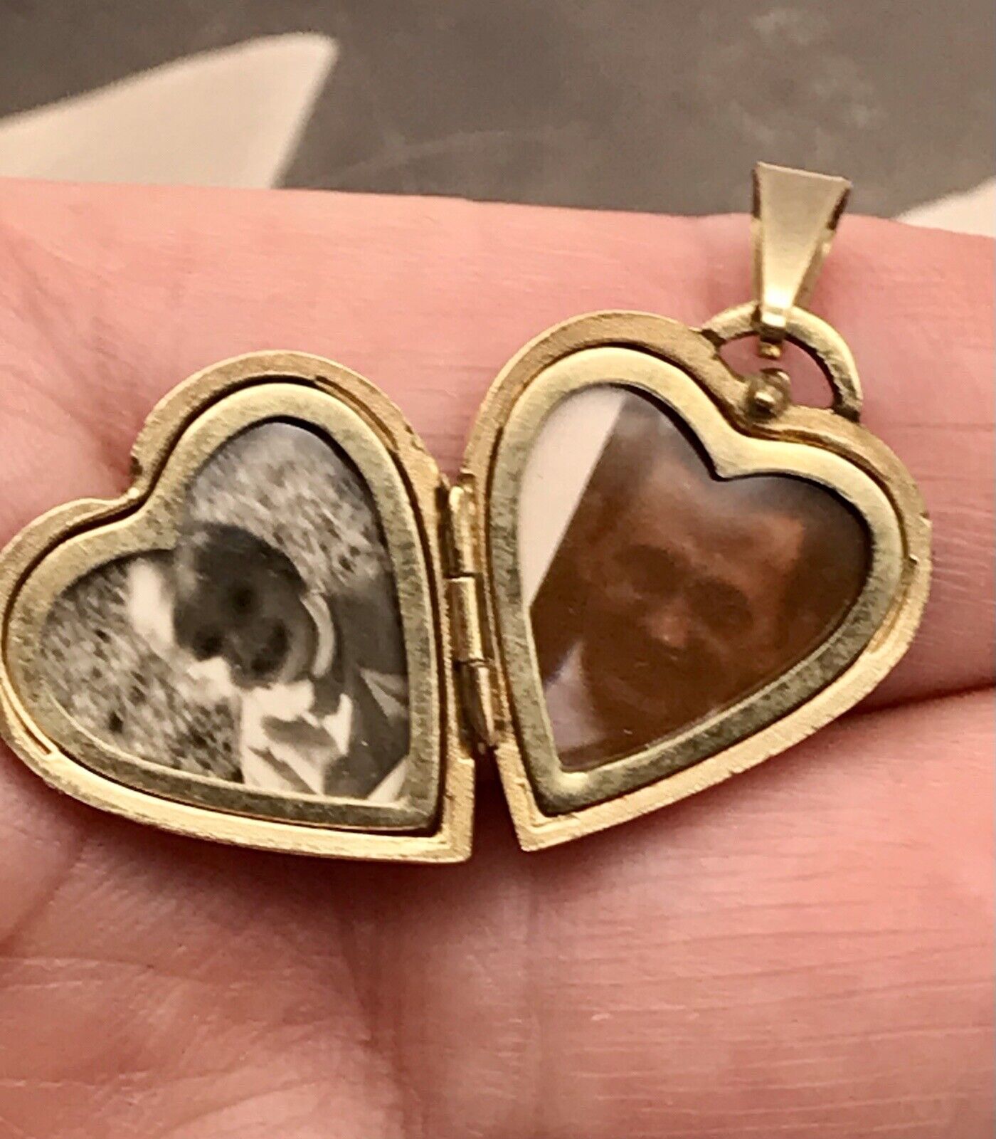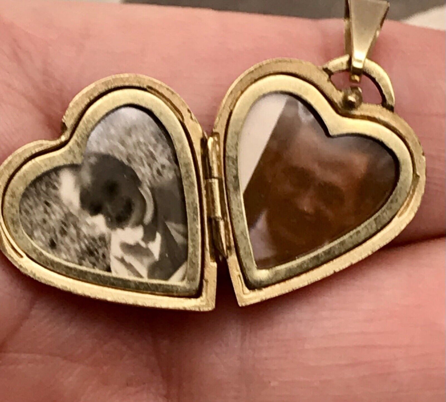 Kommodengriff präsentiert einen wundervollen edlen alten Kettenanhänger Anhänger herzförmigen Foto-Medaillon aus Amerik. Doublè