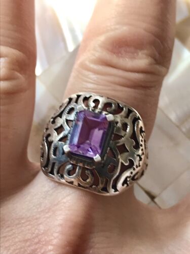Vintage antik? Edel DAMEN RING Silber 925 Amethyst ? Gr.57 Durchbruchmuster 18,1