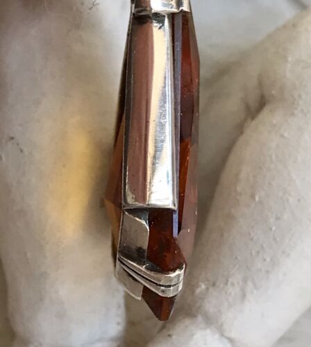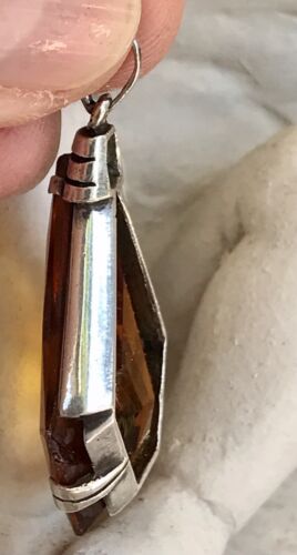 Vintage Art Déco groß Anhänger Silber Stein Super Design Citrin? gelber Topas?