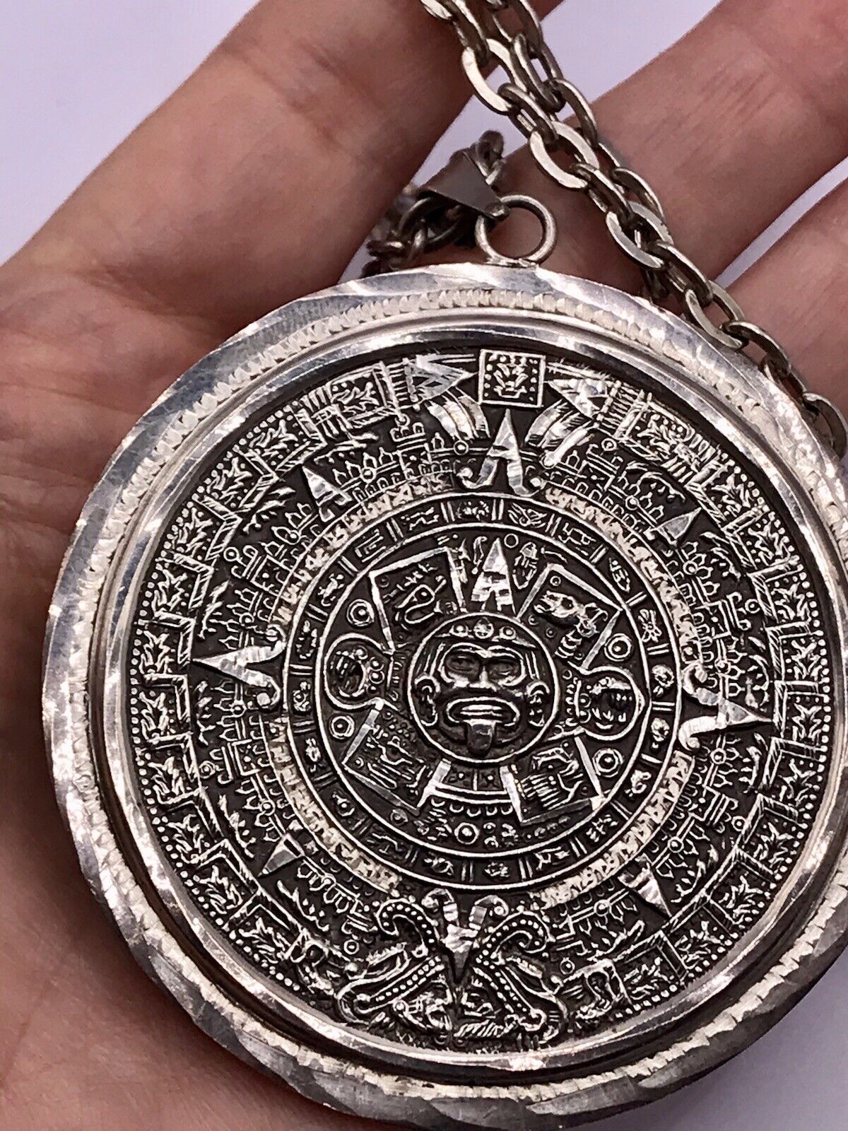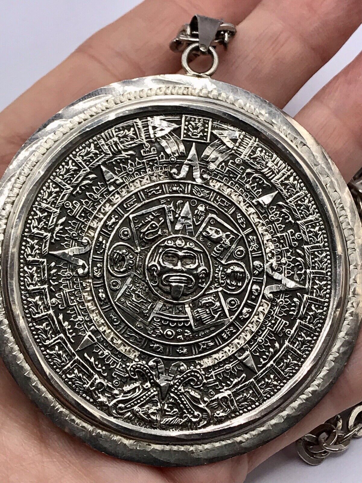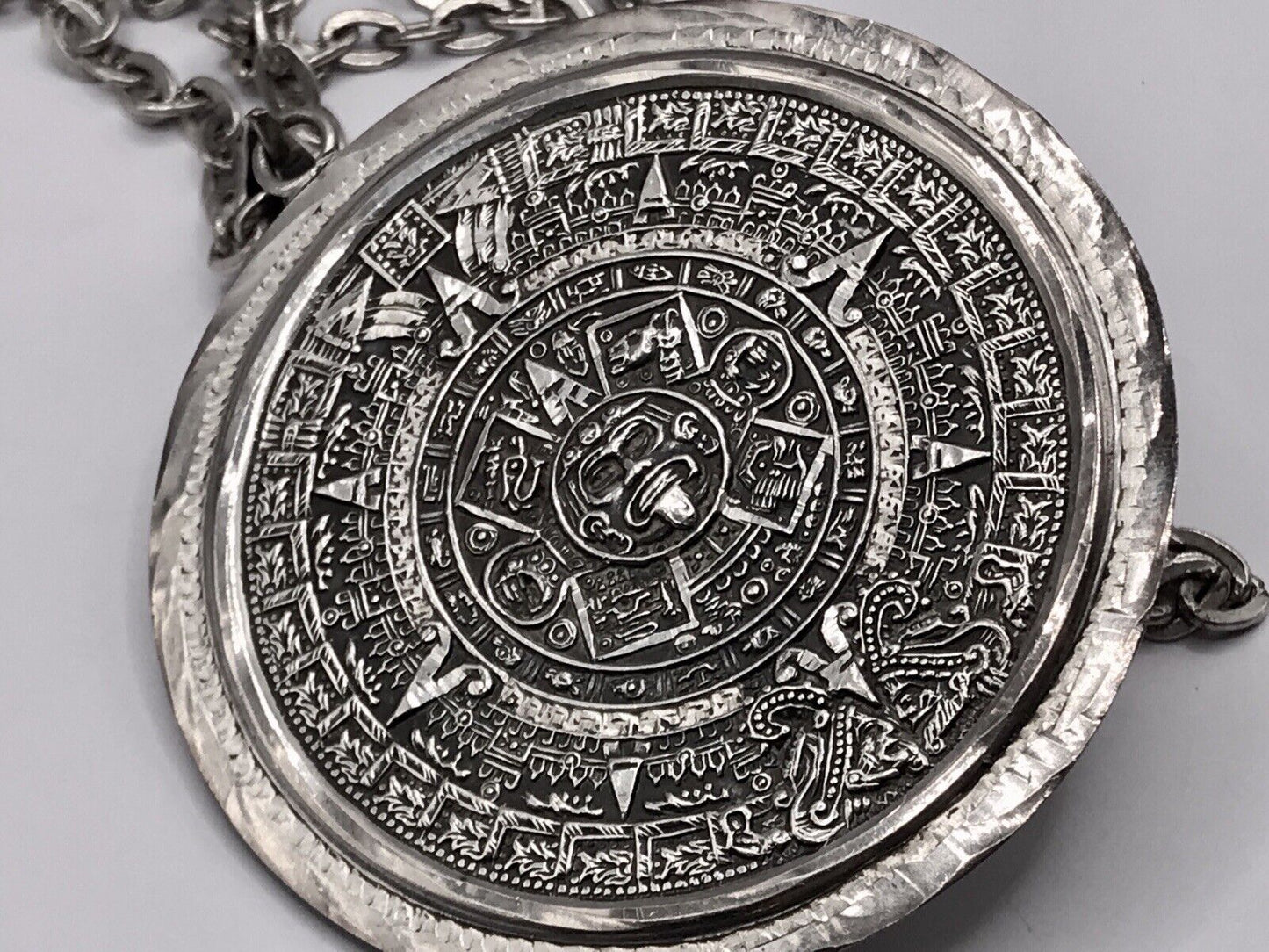 Vintage Azteken Kalender Maya Halskette Kette Anhänger Kettenanhänger Silber 73g