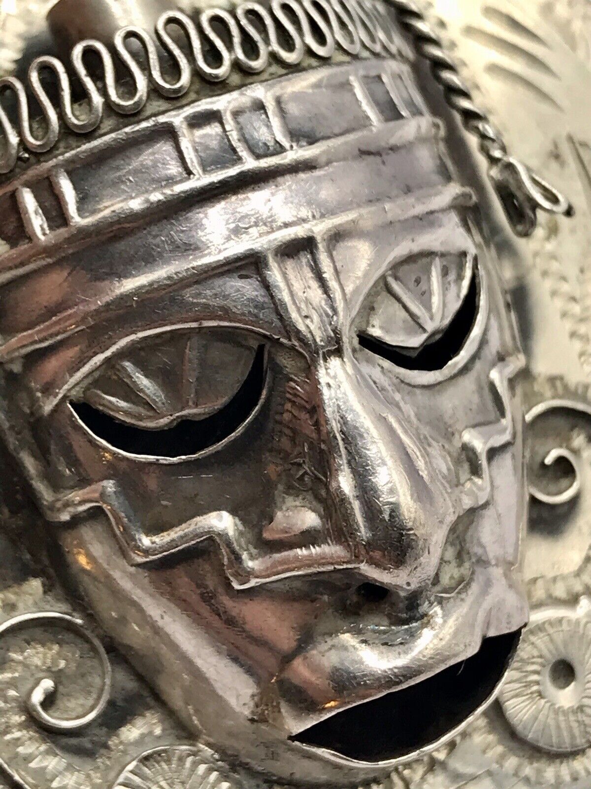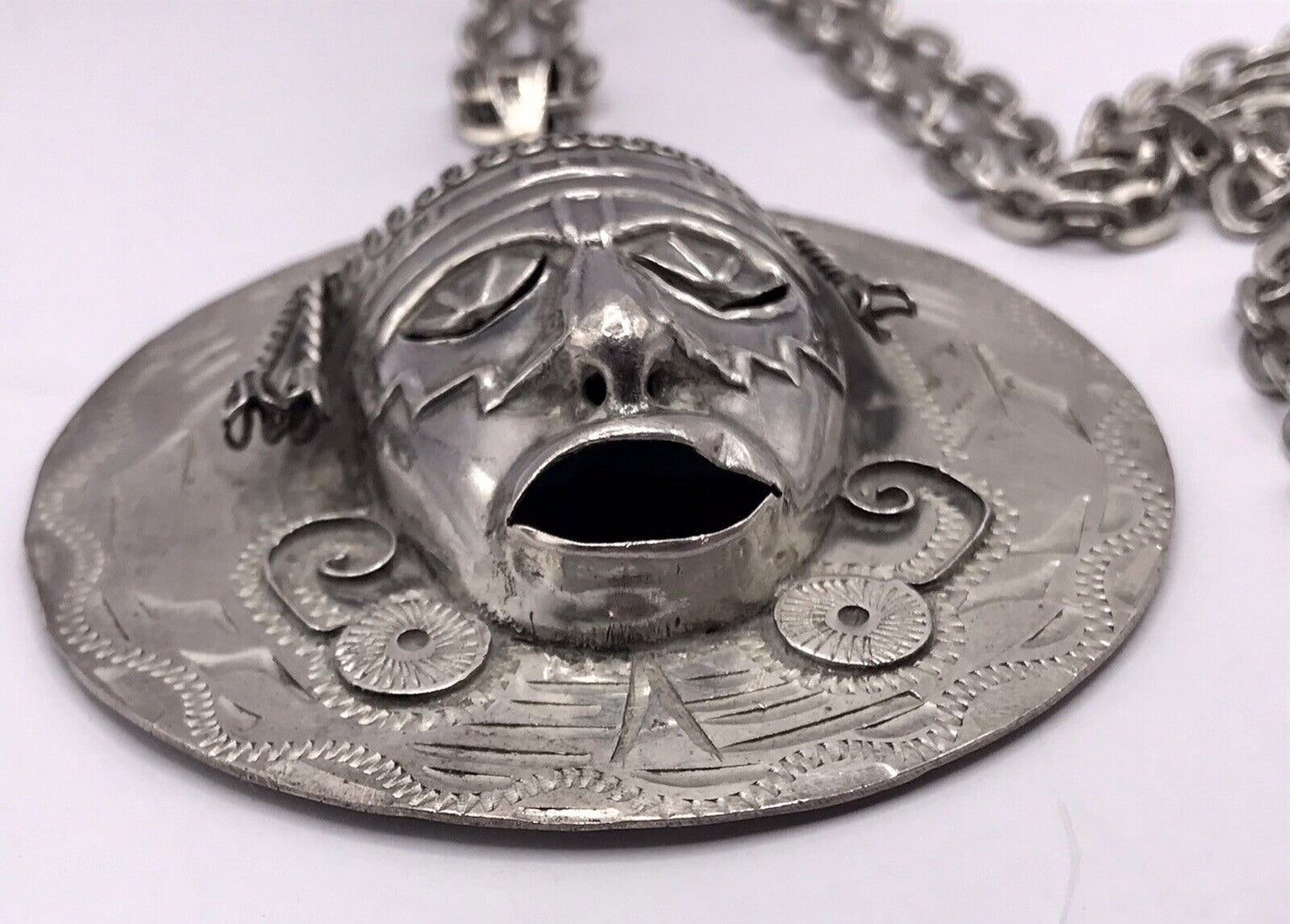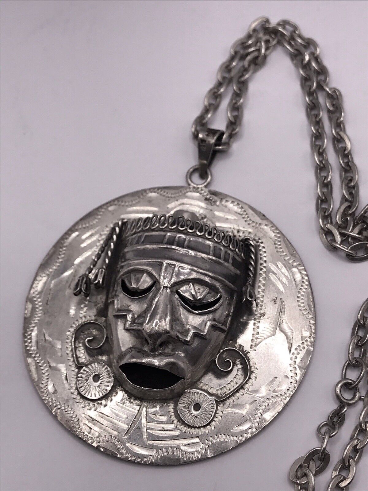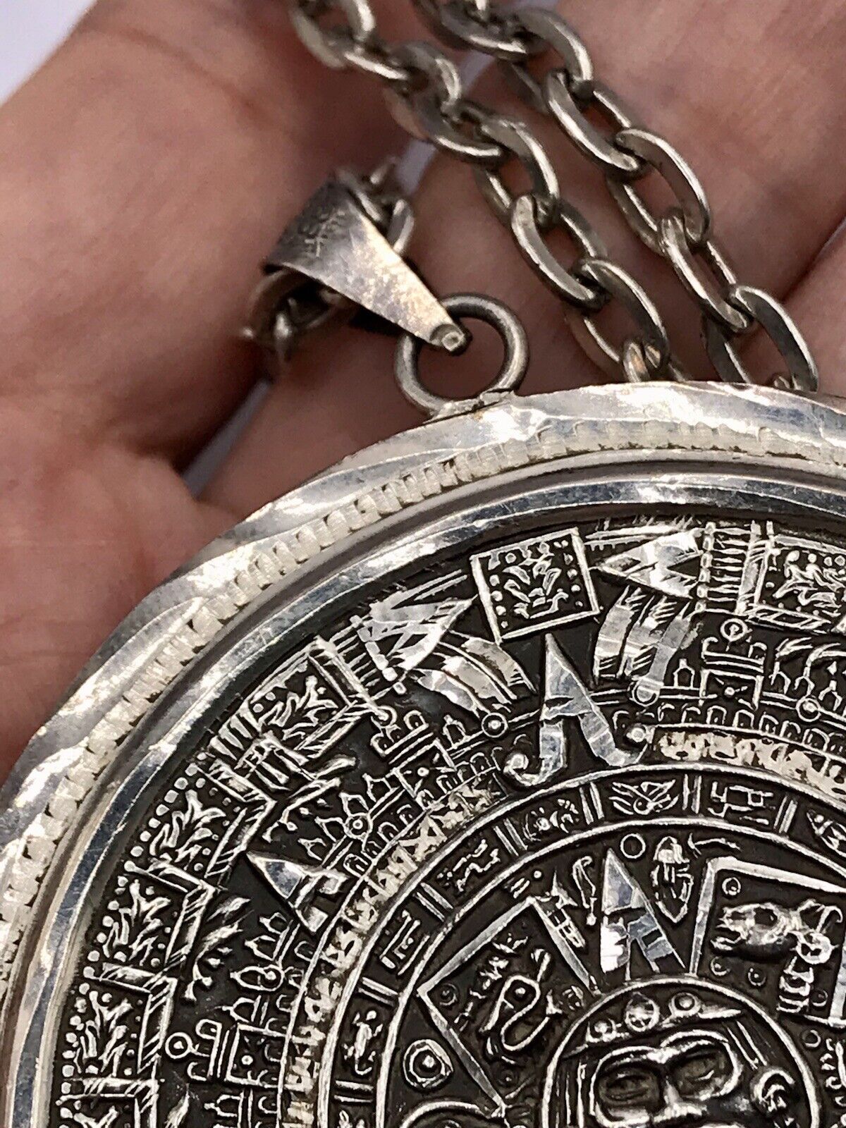 Vintage Azteken Kalender Maya Halskette Kette Anhänger Kettenanhänger Silber 73g