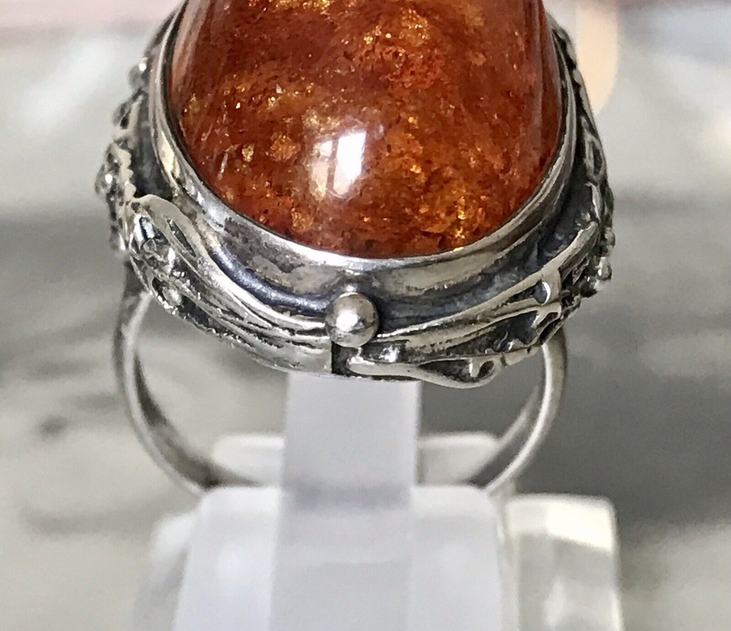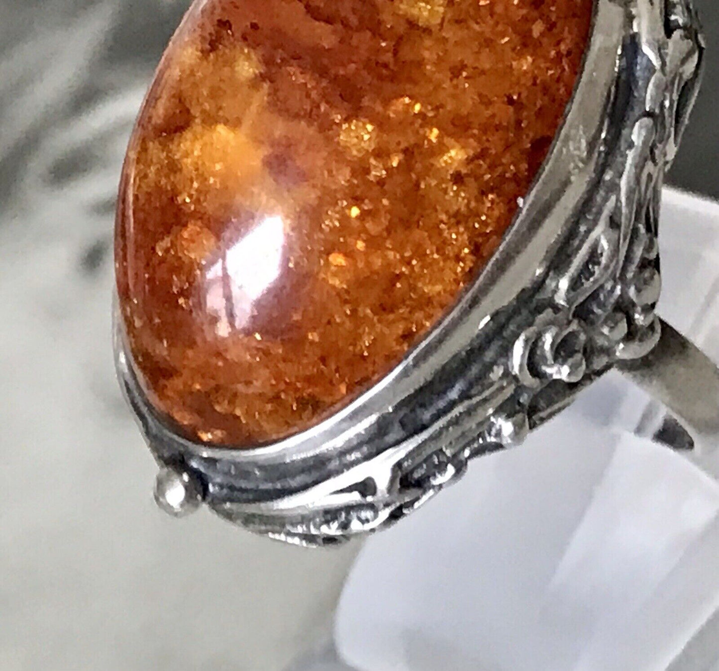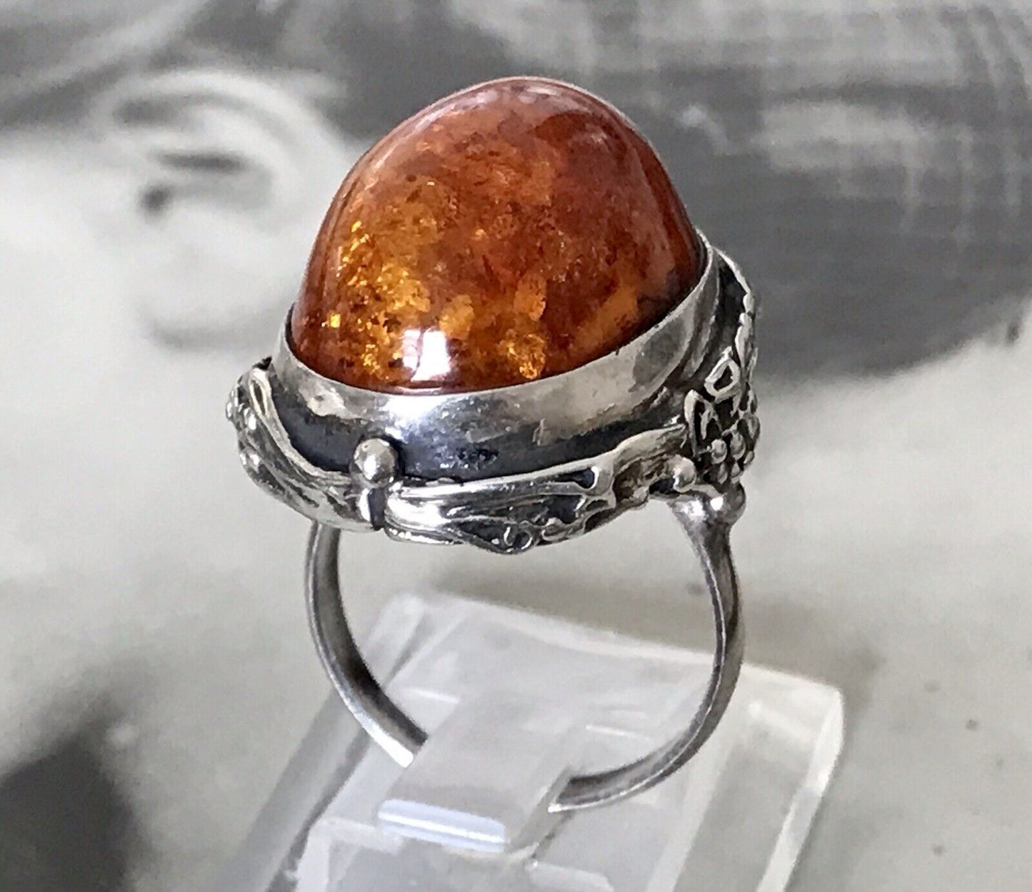 Vintage Baltic Bernstein DAMEN RING Silber Super Jugendstil Design Gr.59