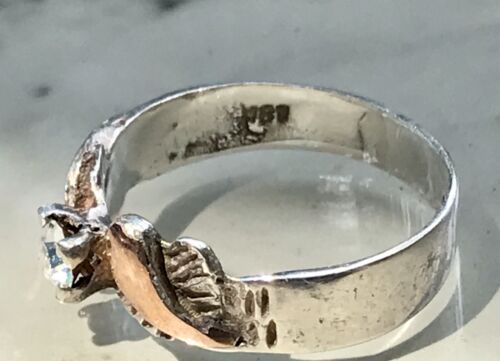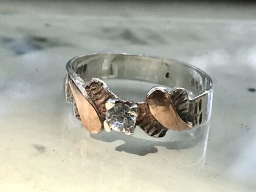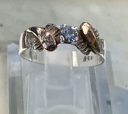 Vintage Damen Ring farbloser Stein 950er Silber teils vergoldet Gr.56 57