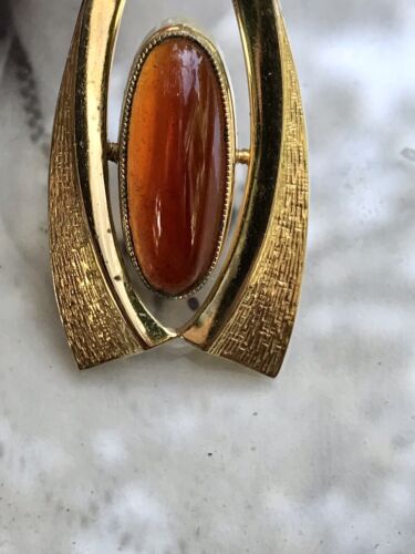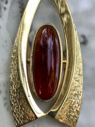 Vintage Designer Anhänger rotbrauner Stein Karneol? Amerik. Doublè vergoldet
