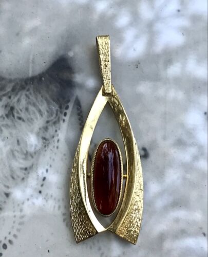 Sehr schönes ausgefallenes auffälliges wundervolles Vintage modernes Designer-Anhänger gefasst mit einem rotbraunen ovalen Cabochon/Stein, vielleicht Karneol ? Näheres unbekannt.