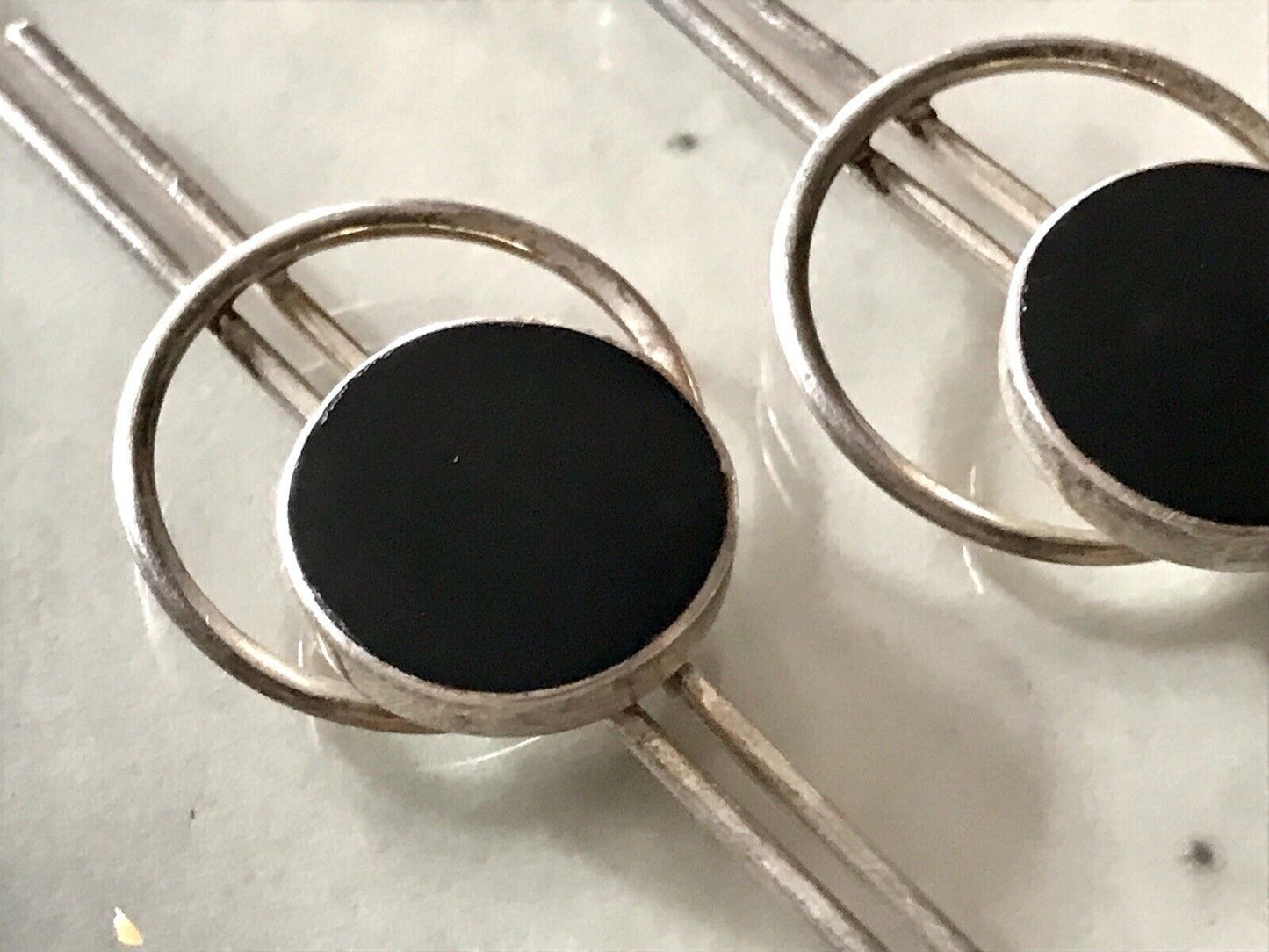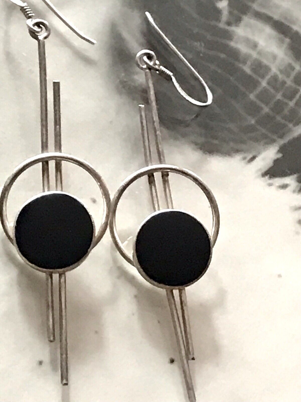 Vintage Edel Ohrhänger XXL Ohrringe 925 Silber 80er Jahre mit Onyx