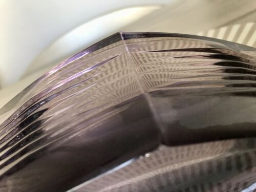H04-34Kommodengriff präsentiert einen wunderschönen schweren dunkellila bzw. amethystfarbenen Block-Aschenbecher Ascher aus schwerem massiven Glas im außergewöhnlichem geometrisierten Design