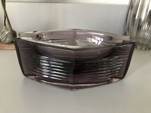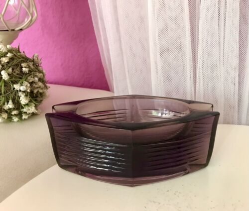 Vintage Glas Aschenbecher Ascher dunkel lila Tschechisch 50er Jahre